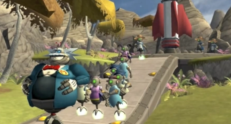 Planeetalla on Abercrombie Fizzwidgetistä tehty robotti, joka opastaa turisteja ja esittelee heille Megacorpin nähtävyyksiä, lähinnä reitiltä löytyviä raketteja. Jos kyseiset raketit tuhoaa, pelaaja saa taitopisteen. Yksi tuhotuista raketeista lentää Megacorpin tehdasta vartioivan robotin päälle.