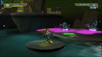 The Acid Bomb Glove is available immediately on planet Pokitaru, along with the Lacerator. With use, it can be upgraded to the more powerful military grade Acid Detonator, the military-grade version of the Acid Bomb Glove,[2] with a larger splash of purple acid. The Acid Detonator could later be upgraded to the Titan Acid Detonator in challenge mode.