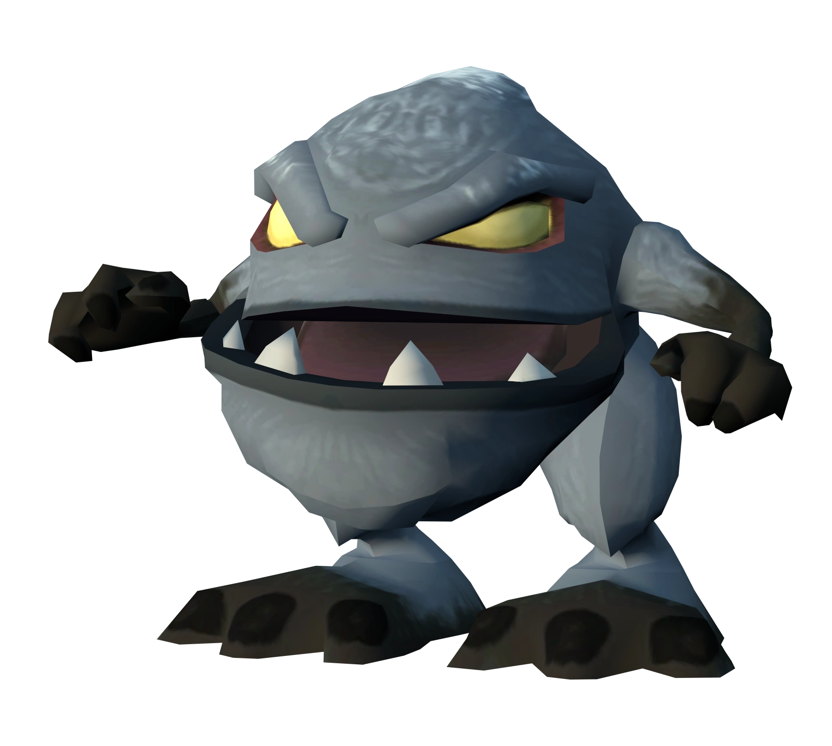 Anklebiters are small, bipedal rodents with grayish-white fur, short, dark brown arms, small feet with large three-footed toes, and glowing yellow eyes. They are normally hidden in the snow before jumping out to ambush Ratchet on approach or are occasionally seen above ground. When attacking, they will run towards Ratchet, with their arms either raised or lowered, and attack by biting on approach. They are relatively fast and will quickly catch up to Ratchet, and they are tough for their size.