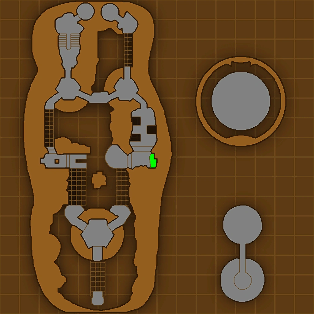 The gauntlets are held within a lava pit inside a rock crater within the asteroid. Each gauntlet starts from the same starting point, and leads to a small one-room building across the lava, in which the path leads either left or right depending on the challenge. Both paths lead along the cliff wall on either side, with the left focusing on platforming, and the right on combat, with both ending in another room, which then splits again, connecting each other in a bridge across, as well as both leading to separate end points. The right end focuses on platforming traps and puzzles, and the left on a small combat area.