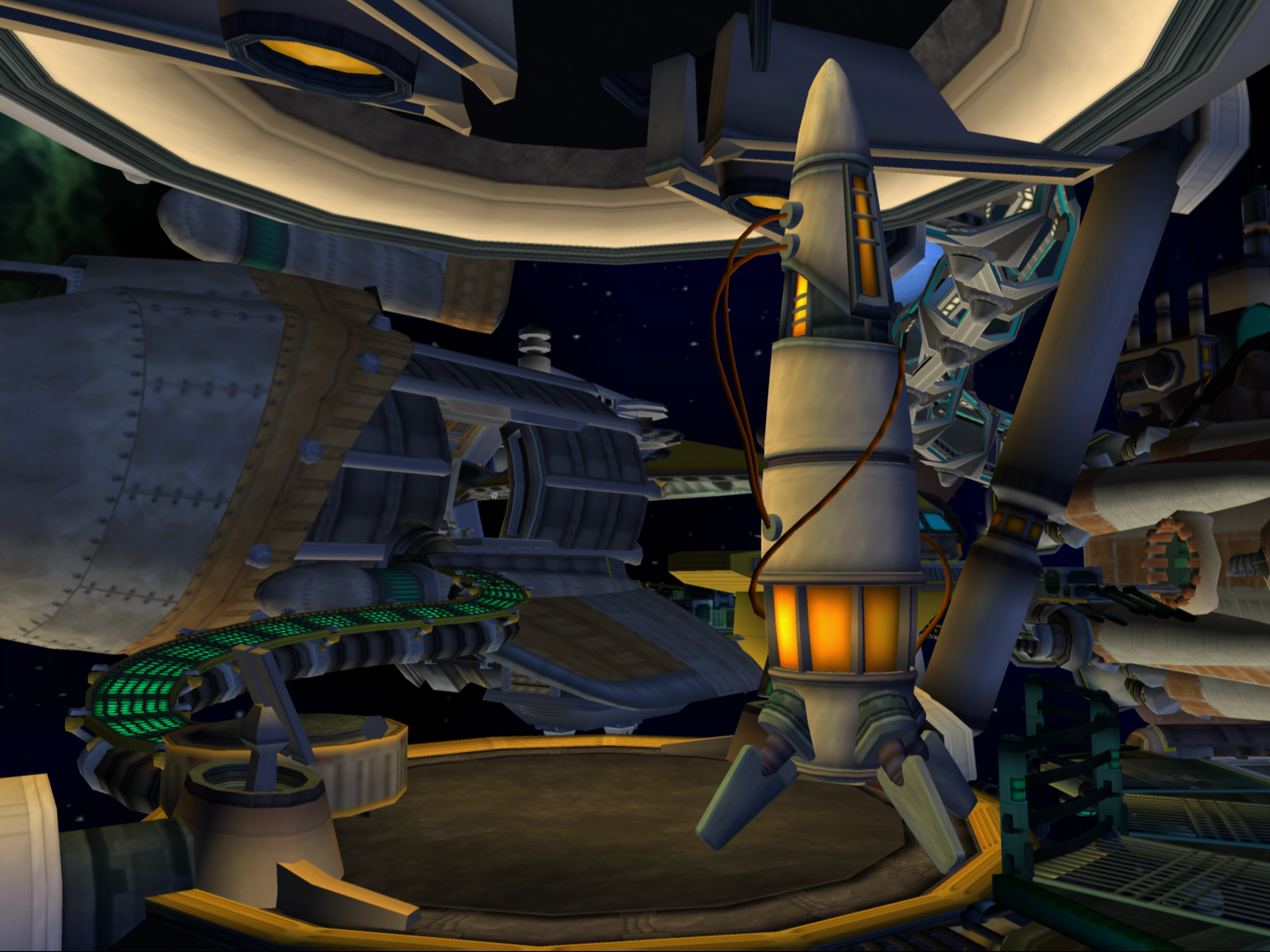 Insomniac Games artist Chad Dezern (now the North Carolina studio director) drew a piece of concept art named "Asteroid Observatory" for the first game that showed many of the hallmarks of a trademark Ratchet & Clank level—hoses, antennae, and clustered building composition. This picture later became the inspiration for Nebula G34 - Blarg Tactical Research Station, or as they called it back then, level 6.