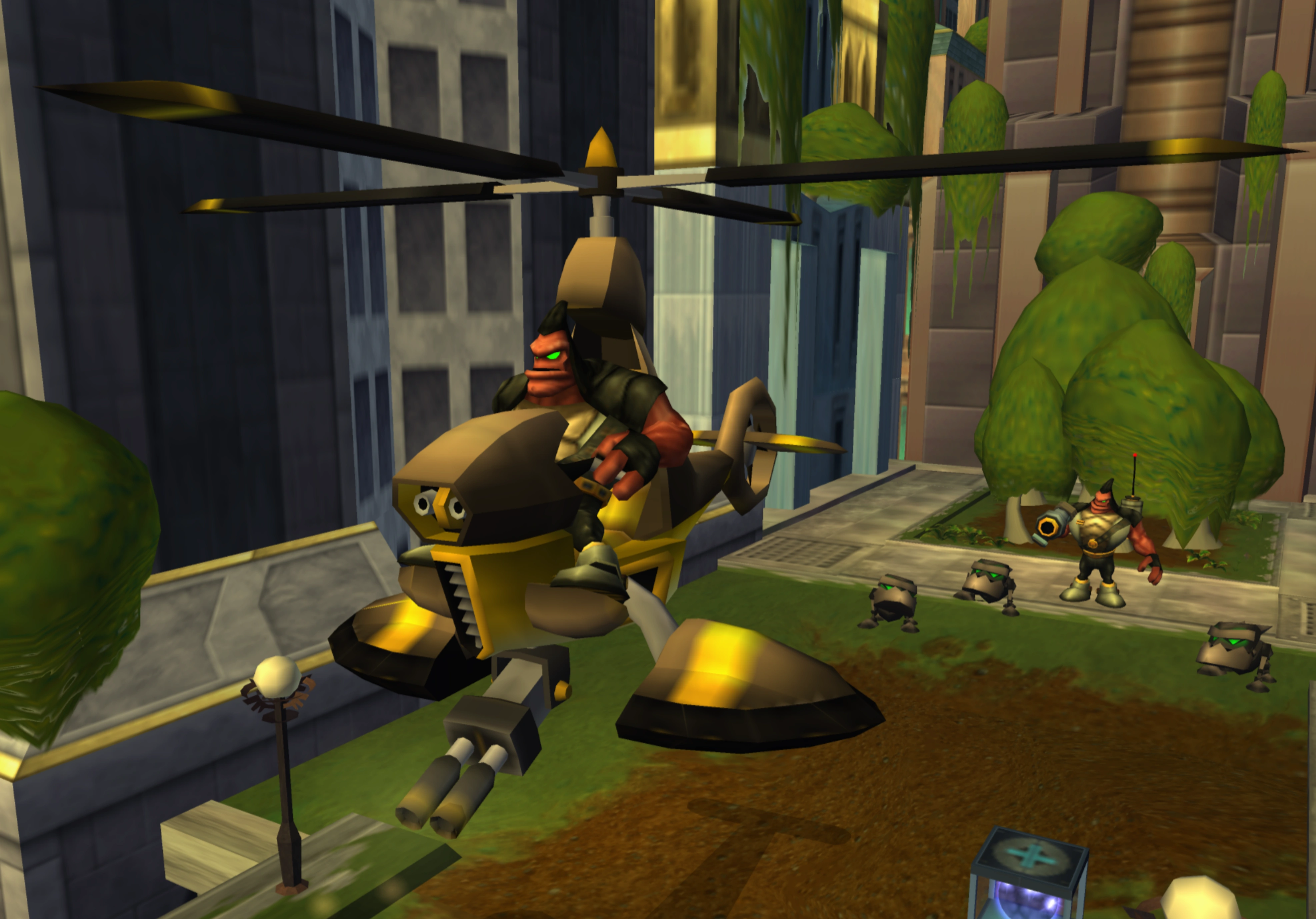 In the original release, blarg heli-commanders were first found throughout Metropolis, Kerwan, fought during "Visit Al's Roboshack", where they appeared along the way to Al's roboshack. Later, heli-commanders with helicopters firing rockets appeared in the bomb factory on Hoven, defending the PlanetBuster Maximus during "Destroy the Planetbuster", both by attempting to kill Ratchet before reaching it, and later attempting to destroy his turret as he fired to destroy the ship. Finally, heli-commanders were fought again in the Ultra-Mech Unlimited testing facility on Quartu by Giant Clank, who destroyed them along with other Ultra-Mechs.