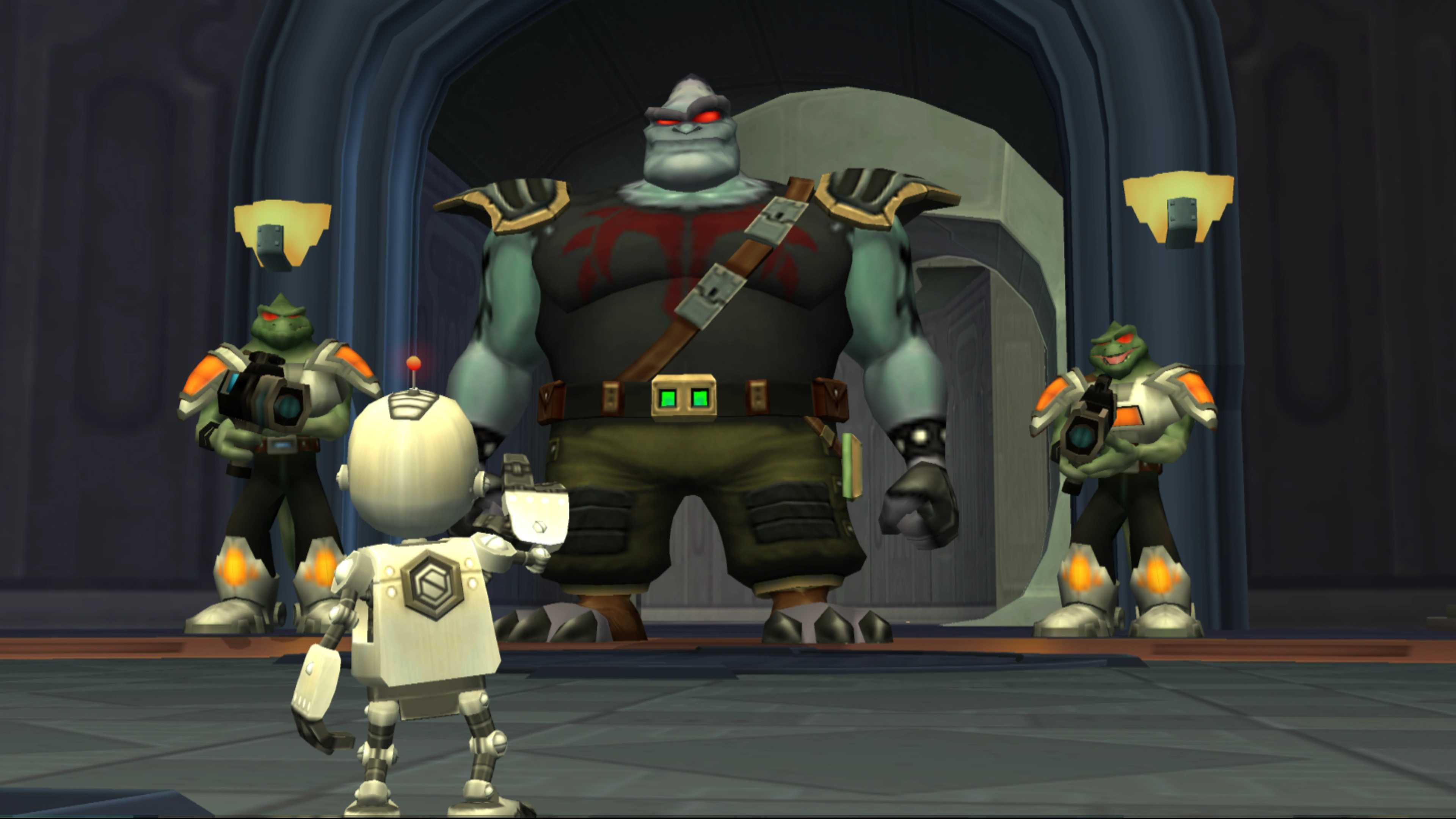The Thug Leader interrogating Ratchet and Clank