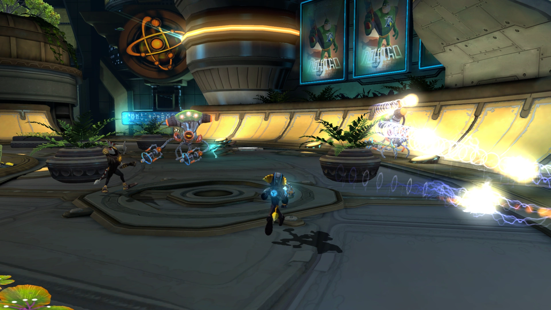 Bypass the Defense System is a mission in A Crack in Time, taking place in Axiom City's Neurox Plaza on planet Terachnos. Ratchet and Alister Azimuth were unable to enter Pollyx Industries themselves, but Alister knew a terachnoid on the inside, Jarvis, that could help them enter the building.