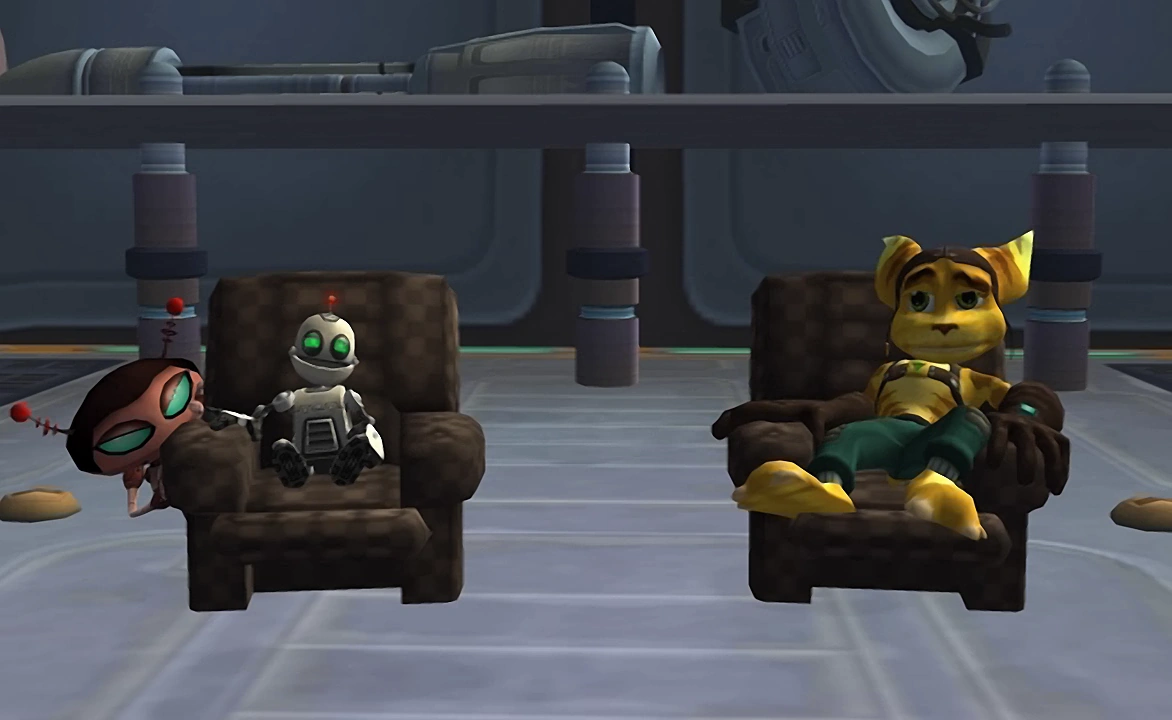 - ↑ Ratchet & Clank (2002 game) script § "Mom?"
