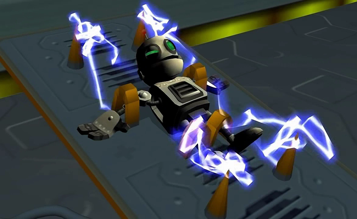 Clank being electrocuted by the Unknown Thief.