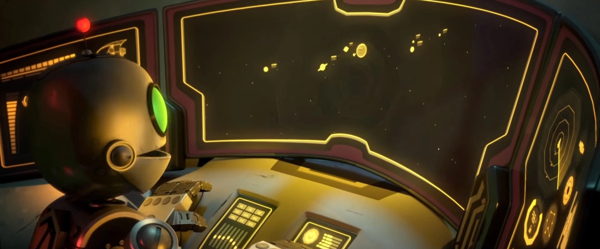 Clank inside his escape shuttle.