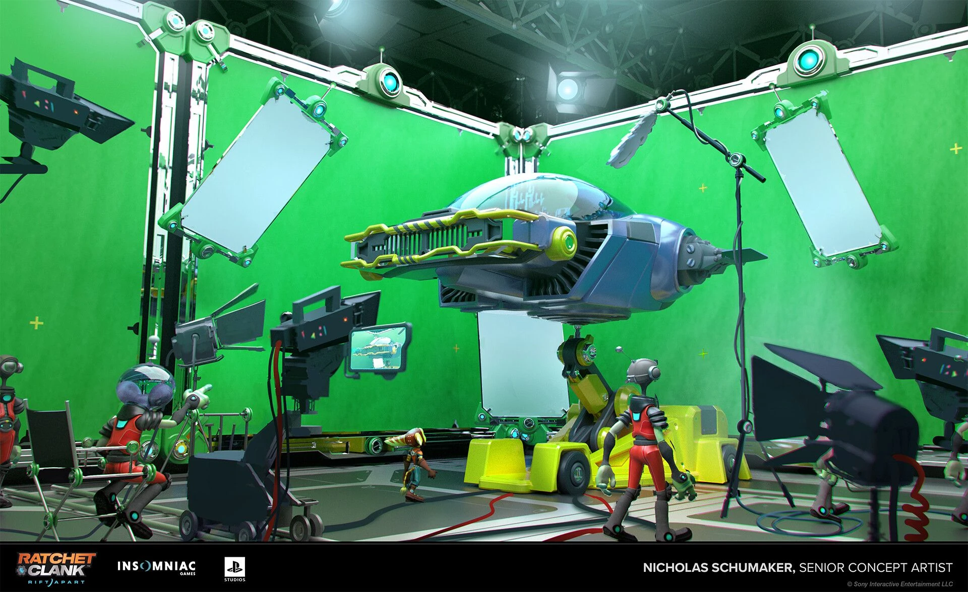 An unused concept for the beginning of Rift Apart had Ratchet and Clank starting off in a green room getting pampered during the filming production of a holovision show or holofilm. This concept however did not make the final cut and the Festival of Heroes in Megalopolis was used instead as the game's introduction event.