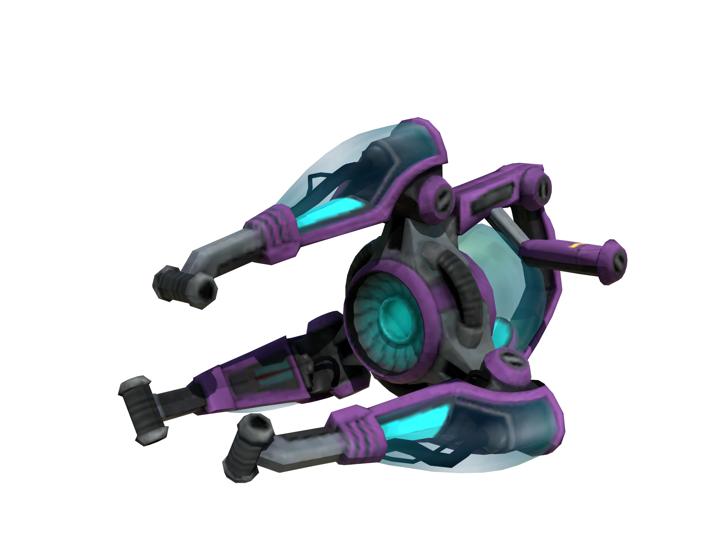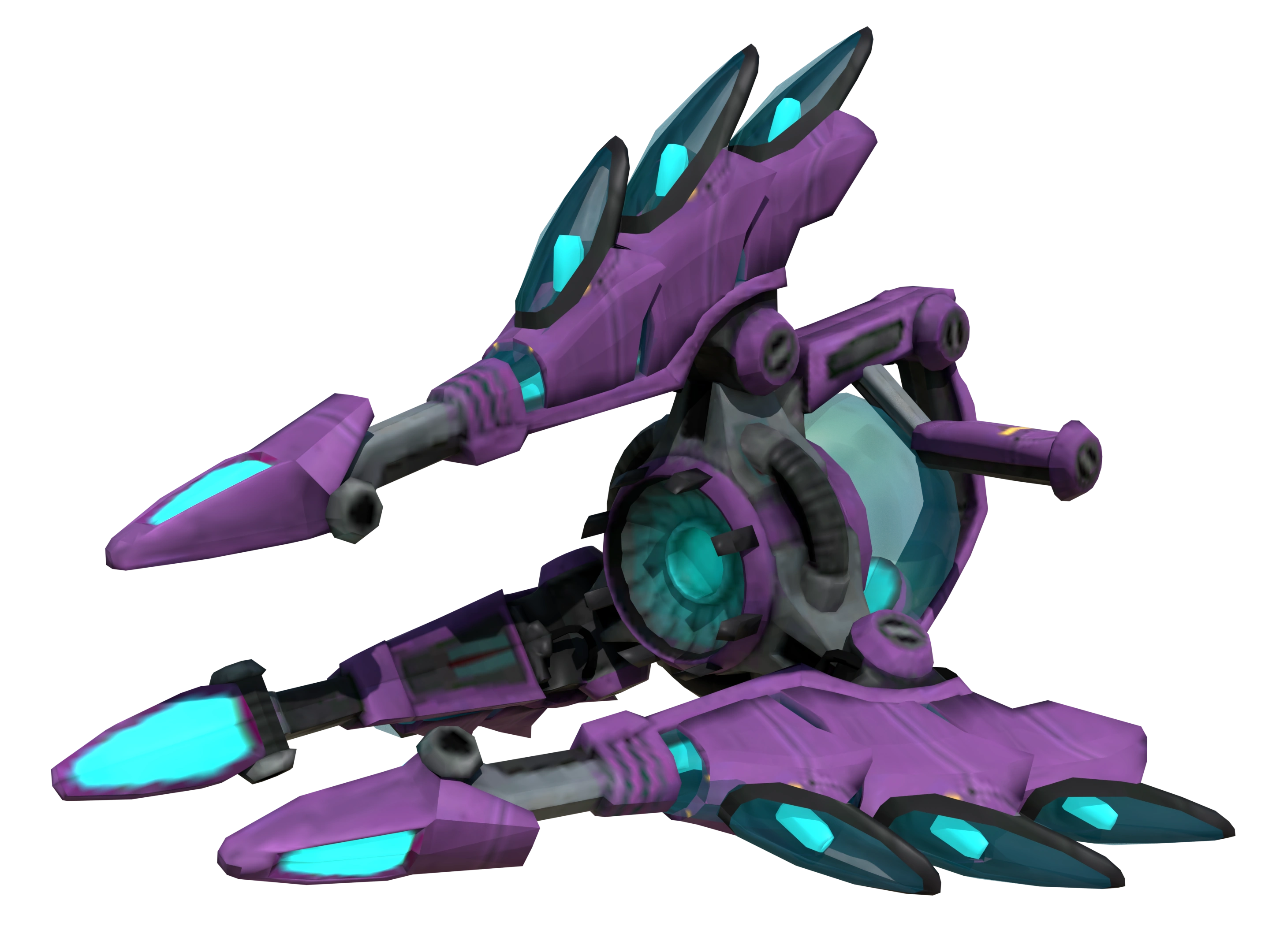 The Critter Strike is a weapon in All 4 One, manufactured by GrummelNet Industries. It is a transmogrification weapon that fires a rainbow-like beam, locking onto enemies and transforming them into various animals. It has a purple and cyan color theme with a claw-like appearance due to its three long prongs. The elite upgrade adds additional metal scales to each prong's exterior.