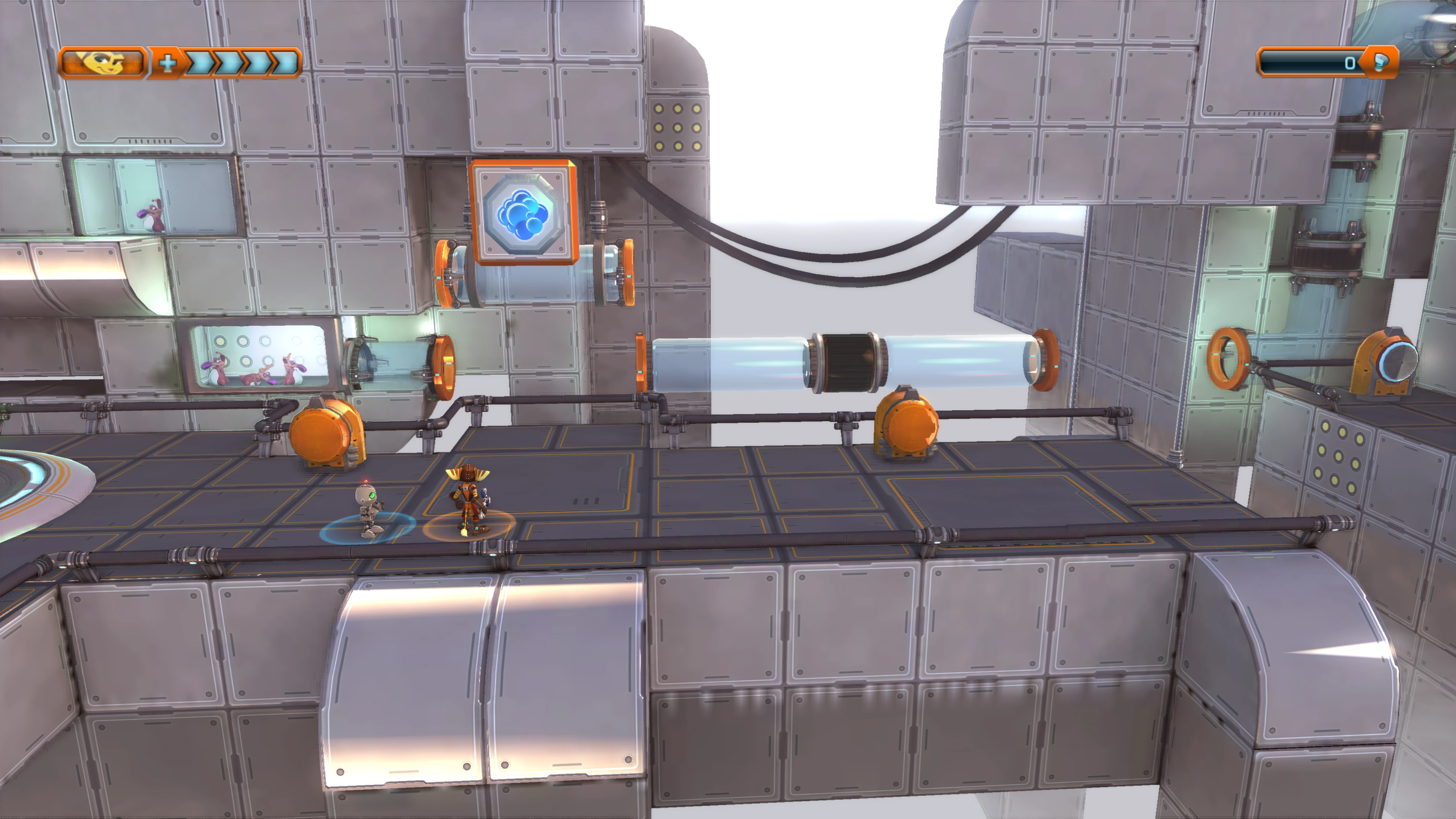 Completing each lab—by helping a critter traverse a tube gauntlet to the end—grants participants bolts and a RYNO VI Protosuit part. There are six labs in total, and completion of each unlocks the RYNO VI Protosuit. If a lab was missed, it is possible to level select to return and play it again, so as not to miss the RYNO VI Protosuit part.