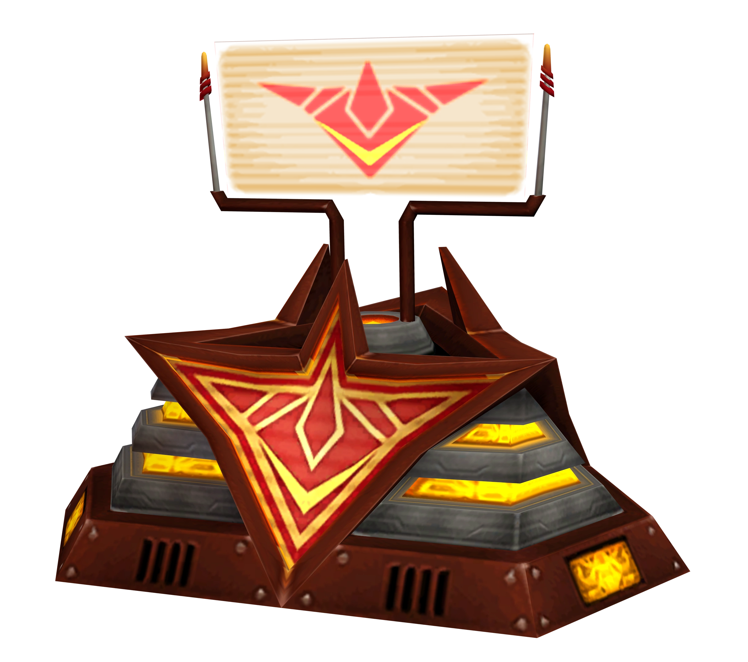 Deadlocked features only two types of vendors, the most common of which are operated by DreadZone. These are shaped as a tetrahedon, with a dark red and orange color scheme, and are used to sell both weapons, ammunition, omega mods, Wrench Upgrades, and alpha mods (in challenge mode). They also have a large logo covering each side and a flat top, out of which pops a rotating hologram screen when the vendor is approached. At least one appears on every battlecourse on each planet, with usually one for each challenge if it was to be done on foot.