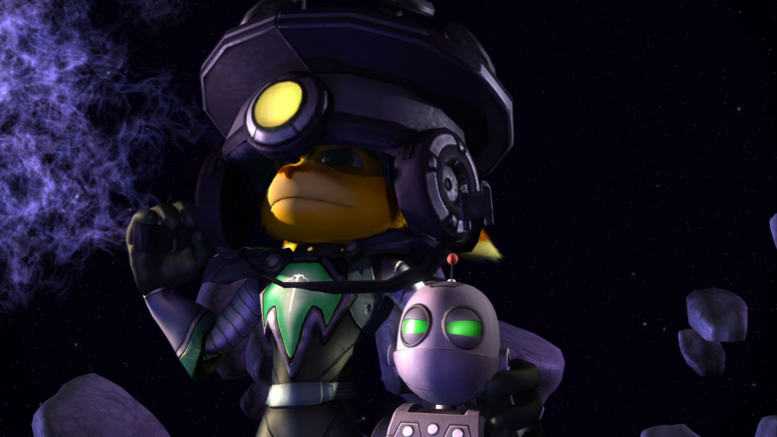 After defeating Slag, Ratchet and Clank had a heated argument about what to do with the Dimensionator. Captain Qwark, trying to prove himself as a hero, took it from them and pledged to throw it into a black hole. However, he used a shuttle headed for Reepor, the cragmite homeworld.[20] This allowed Tachyon to take the device from him and release an army of cragmites, and used them to invade Meridian City, Igliak. Ratchet then blamed himself for not listening to Clank and not destroying the Dimensionator when he had the opportunity.[21]