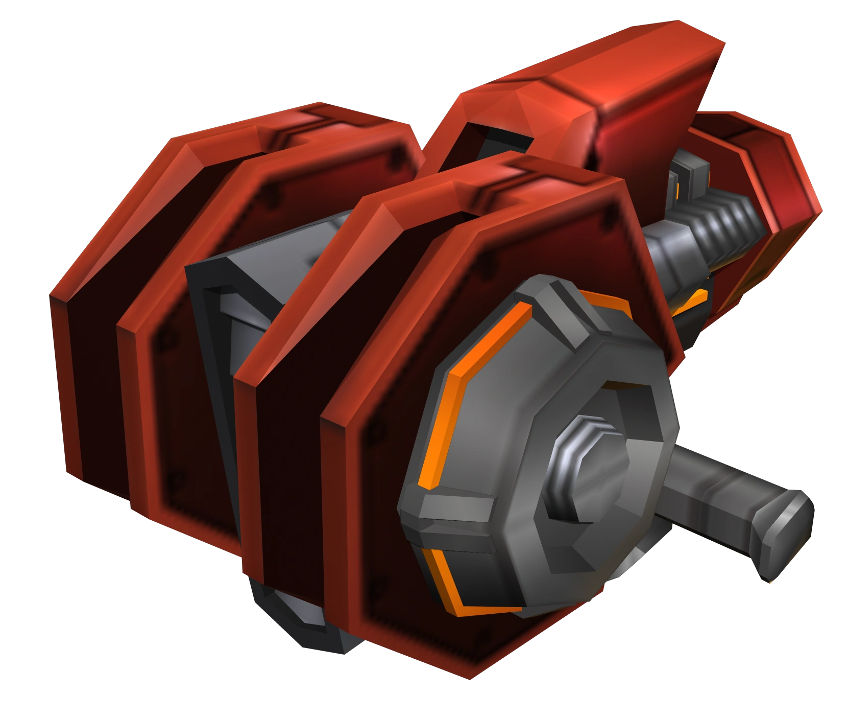The Disc Blade Gun is a red and dark grey weapon, with a left-hand grip. It has a single slot from which discs are fired. The Multi-Disc Gun has a barrel with two slots instead.