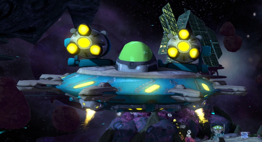 Dropship enemies are deployed by Nefarious Troopers in A Crack in Time. Used throughout the Breegus System in the Polaris Galaxy, they are flying saucers equipped with missile launchers on either side of their cockpit. Dropships teleport troopers onto the battlefield before either retreating into space or attacking Ratchet and Clank from a distance with their missile launchers.