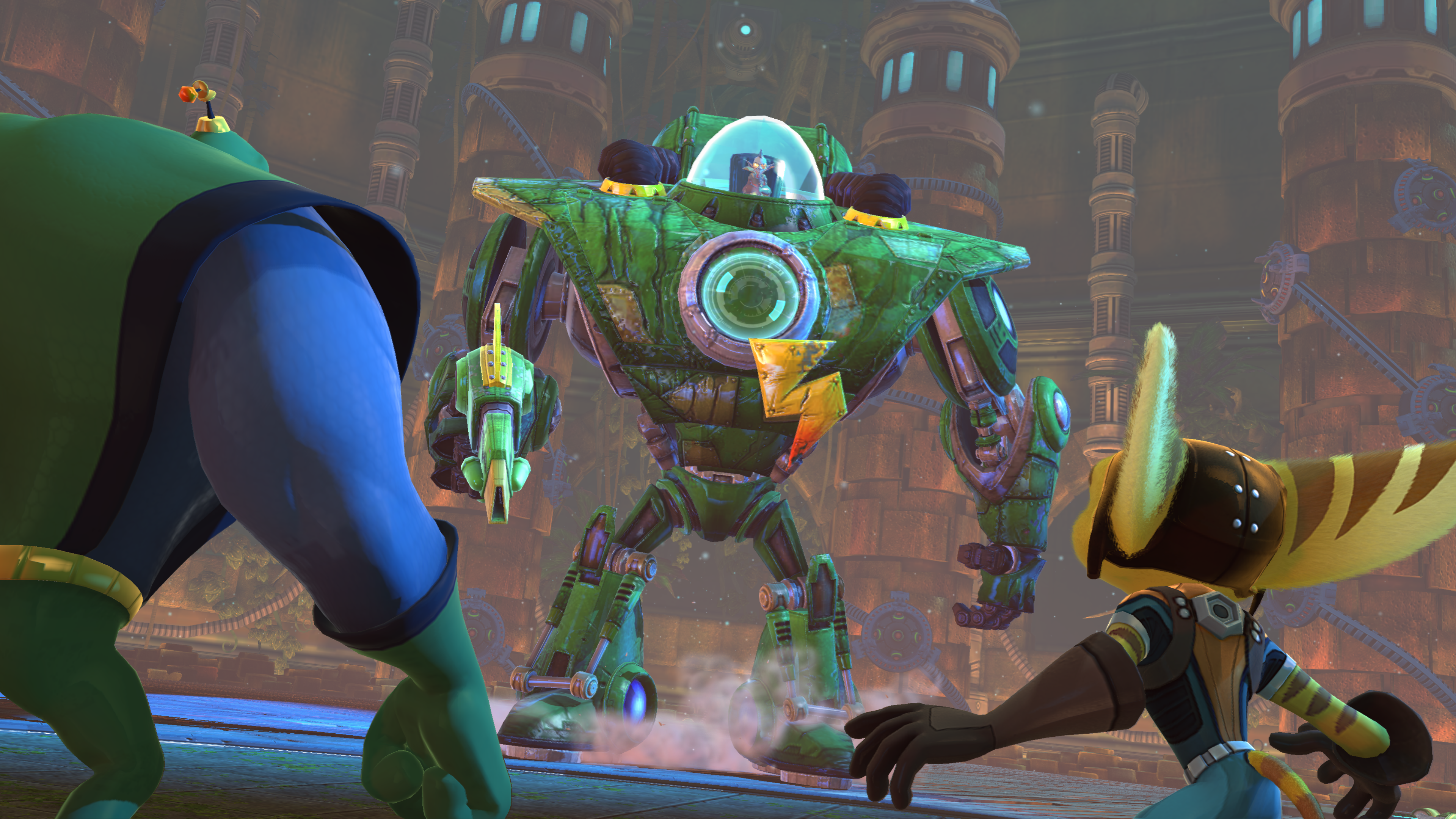 When Stuart Zurgo attacked the Hidden City of Balkai, the Q-Force, comprised of Ratchet, Clank, and Captain Qwark, had to re-take the Planetary Defense Center. They later came for Zurgo's Lair of Doom built within Balkai.