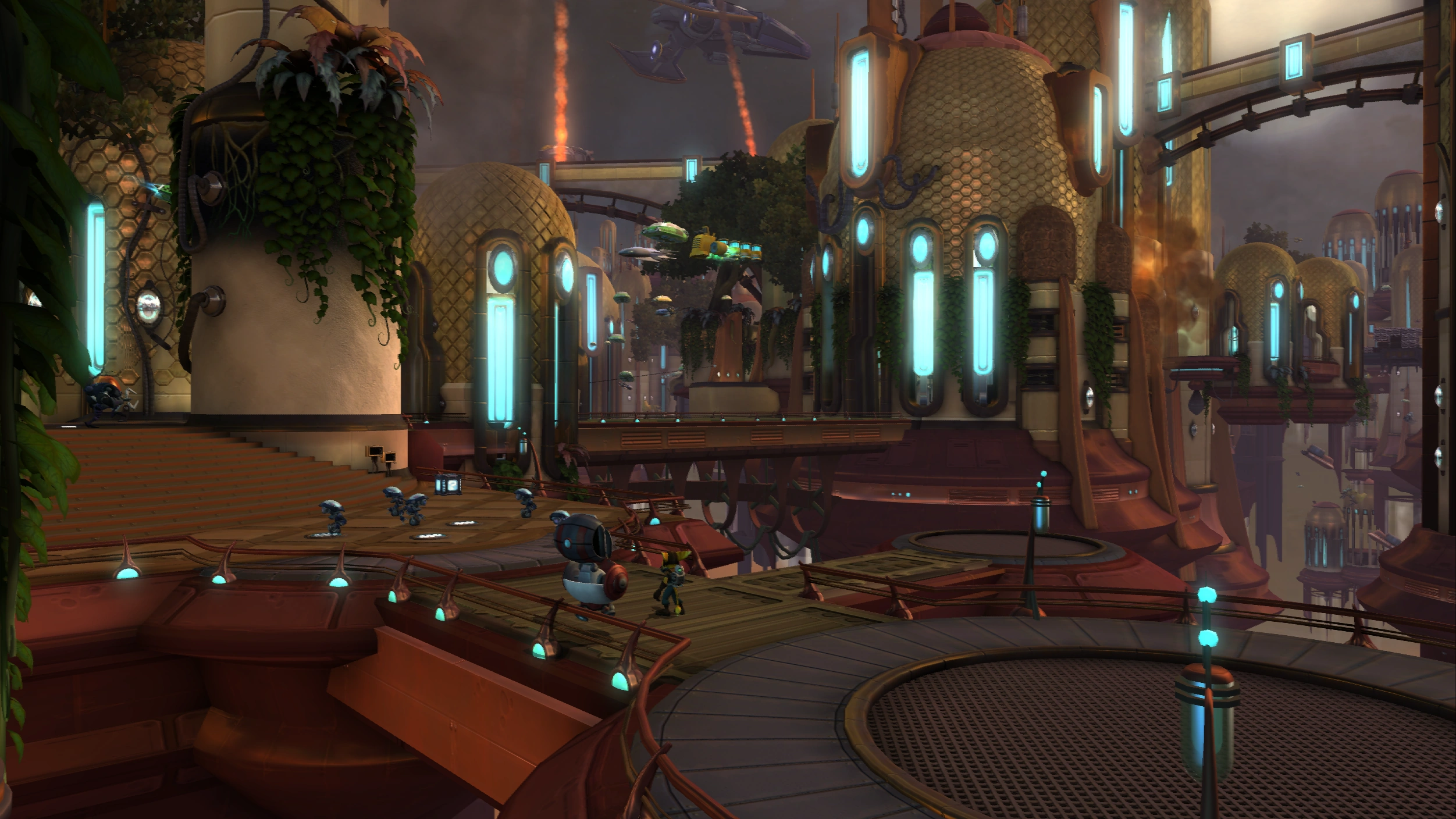 Escape Tachyon's Forces is a mission in Tools of Destruction, taking place in Stratus City on Kortog. Ratchet and Clank were transported to Stratus City on planet Kortog by the Smuggler, where a bioscan revealed a lombax lifeform on-board. The Smuggler opted to kick out the two hitchhikers to avoid capture.