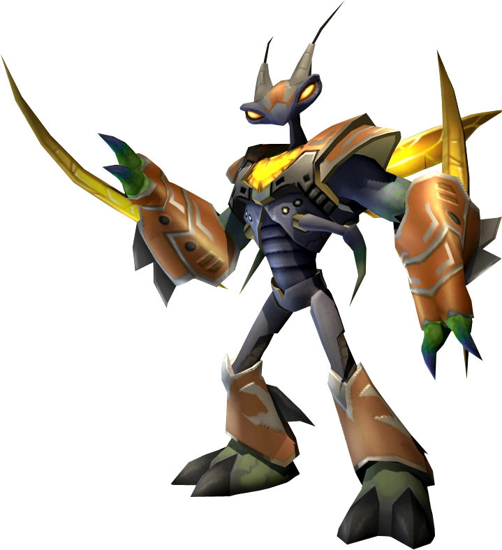 The Eviscerator is an antagonist in Deadlocked. He was a powerful cybernetic insectoid creature. He was a sadistic member of the Exterminators, an elite group of gladiators in DreadZone, who enjoyed slaughtering contestants left and right, and was the only Exterminator unable to speak. He was eventually defeated by Ratchet and Team Darkstar in the Vindicator Tournament.