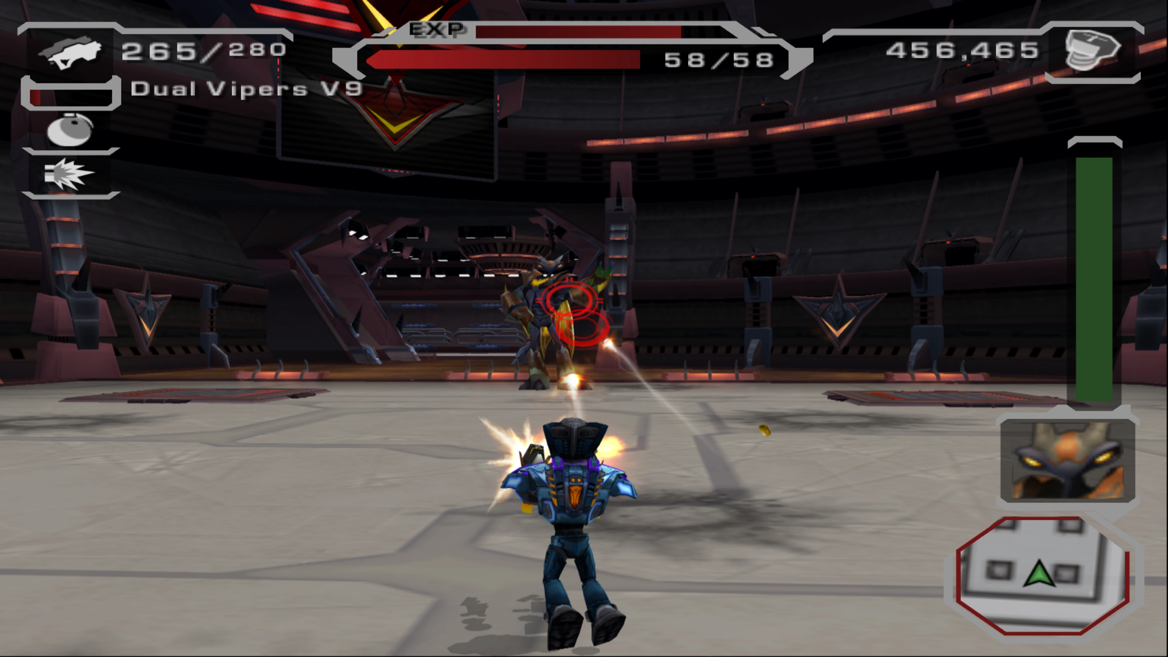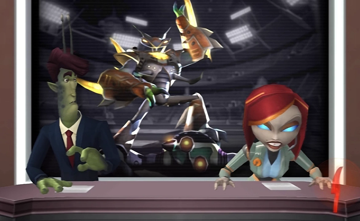 Eviscerator terminated several contestants, including a hero named Mobius Man,[4] and a three-eyed robonoid gladiator.[2] He was eventually defeated by Ratchet in the Vindicator Tournament's "Eviscerator Battle".