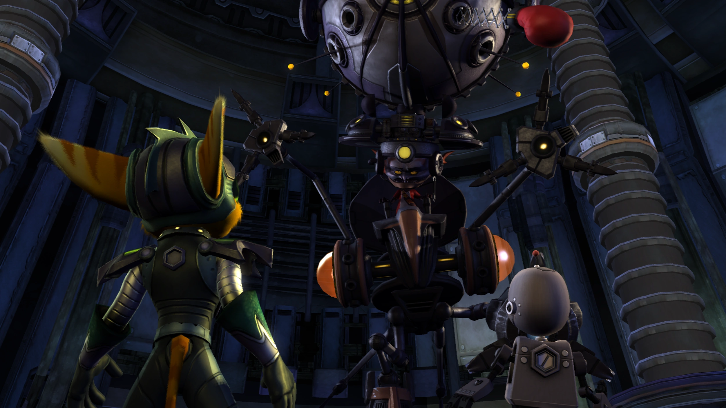 Tachyon confronting Ratchet and Clank.