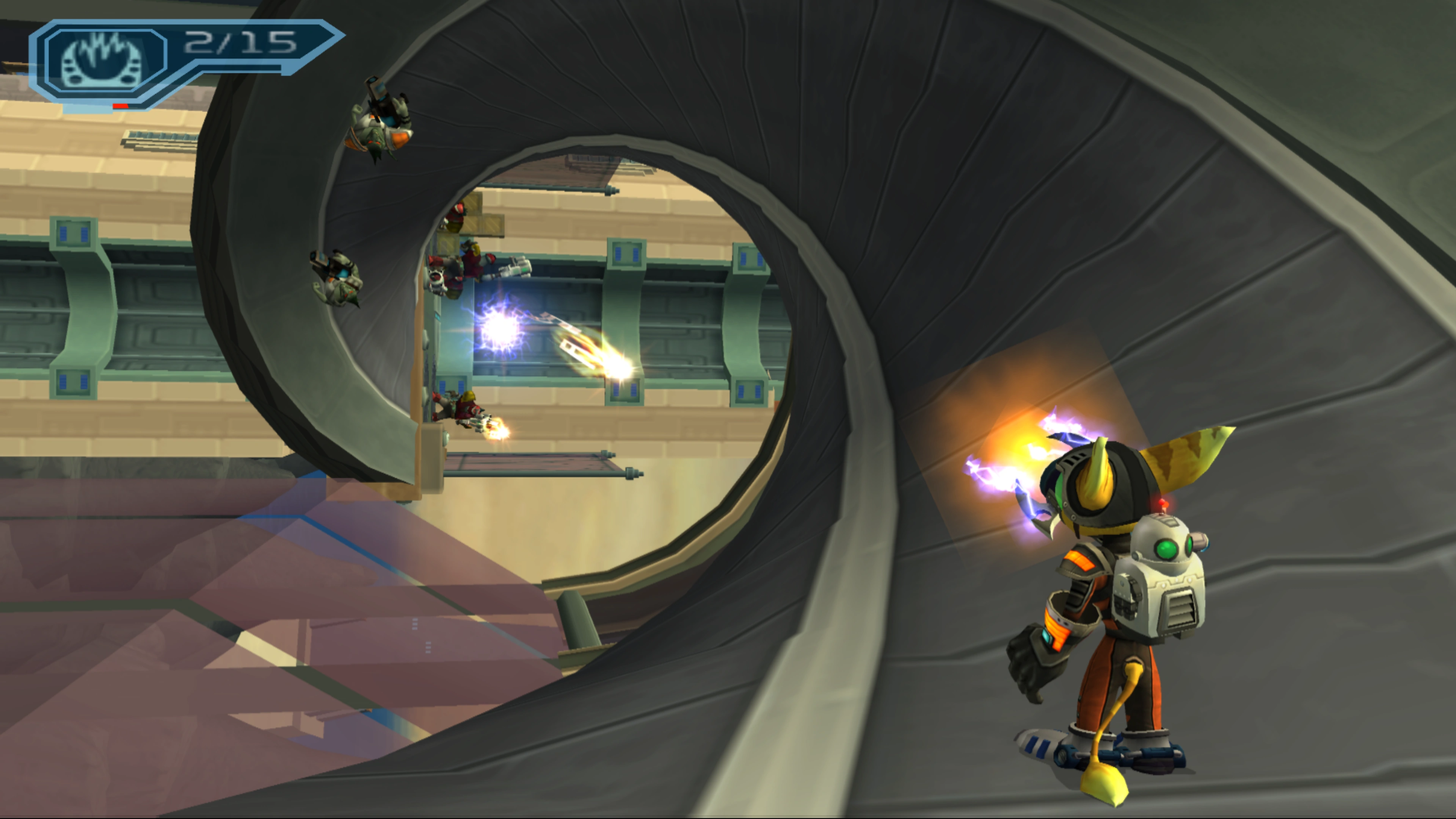 The rest of the mission is mostly a linear path. As usual, kill enemies along the way before advancing too far forward, and make frequent use of cover. Eventually, you will reach a Mr. Fizzwidget robot, and a cutscene comments leading to the next mission, "Free Ratchet from prison cell".