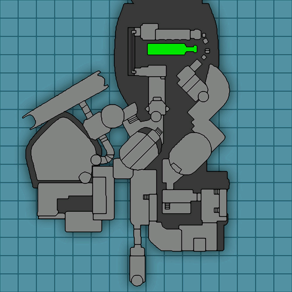 A second hangar stands in front of the elevator exit, with to the right a Gadgetron vendor in a dead end. The hangar is quite tall and thin, with two heightened platforms flanking the central path, with a forcefield-generating tower on the right platform. Past this is the south-western area of the base, which starts with a thin ledge, leading past a trio of turret shells embedded in the wall. A nearby Invinco-Lock can be hacked to gain entry to the building housing them. Past this is a large platform, with a large real wall that retracts when approached (revealing an ambush). Notably, there are three tiny holes in the wall, which can be used to peek and shoot at the rear of three blarg gunners, which are embedded in the wall of the other side of the building. At the end of this linear passage is another elevator that leads back to the interior.
