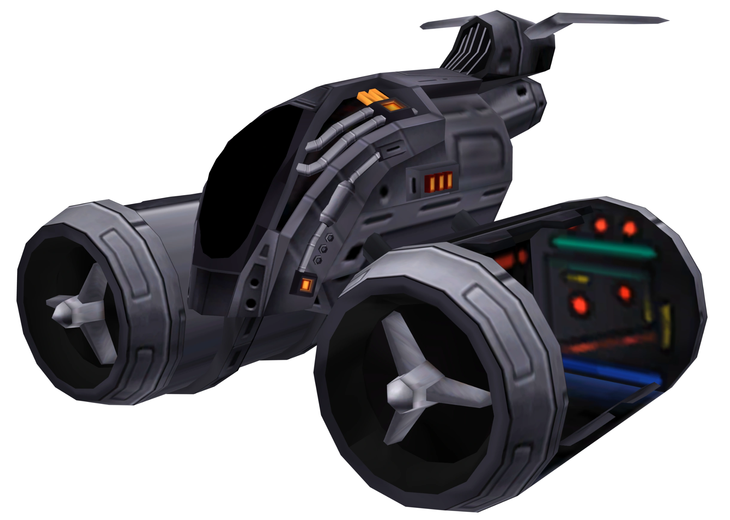 Being the miniboss unit of the Goons, the Dropship is a heavy vehicle with a high amount of health and strong firepower. Because of their high health, it is suggested using heavy weapons on them like the Warmonger and Negatron Collider. The only exception is the very first Dropship faced in Rift Apart, since it is part of the tutorial area and thus has so little health that even the Burst Pistol is viable against it. Since Dropships are a flying enemy type, the Drillhound a pretty poor choice, as it tends to miss it's target when springing out of the ground. It's method of attack is a horizontal sweeping gattling laser cannon. It's laser fire projectiles can be caught with the Void Repulser and fired back at it.
