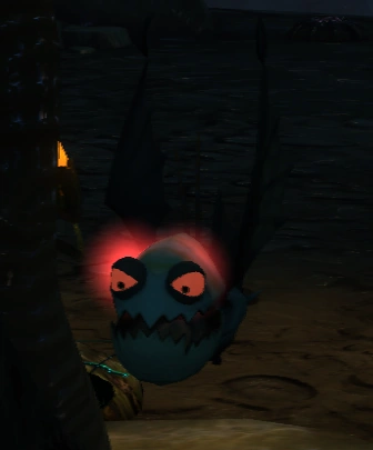 Gore thwogs[1] are enemies in Quest for Booty. They are relatives of the thwog found on Ardolis. Gore thwogs have two large glowing red eyes with black pupils, unlike regular thwogs who have three yellow eyes with no pupil. Gore thwogs are also smaller and lack the tails of regular thwogs that allow them to hang upside down. They are scared of light.
