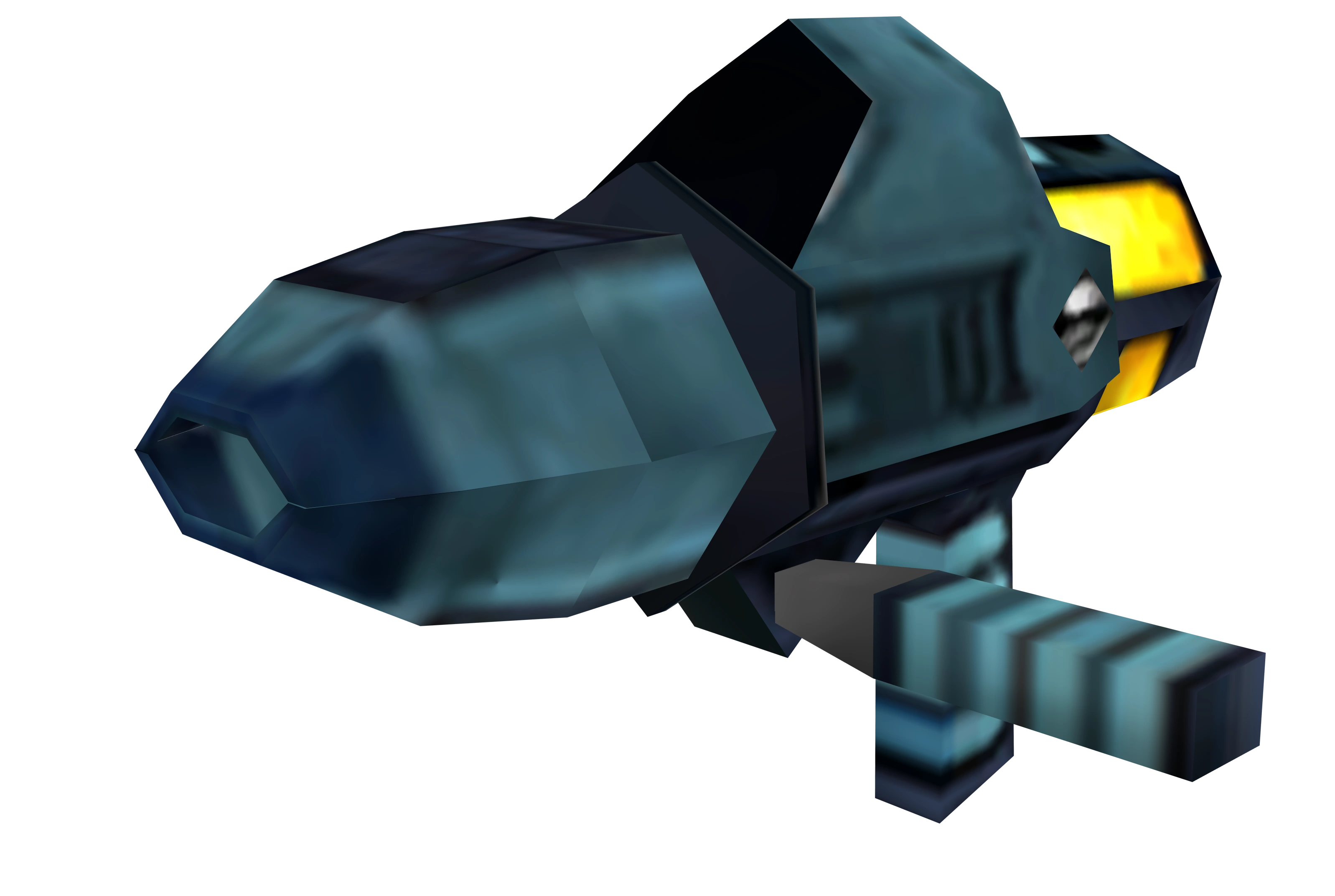 In Up Your Arsenal, the weapon is missing some minor elements to reduce polygon count, such as the tubes from the yellow generator on the back, which now covers the whole back. In Going Mobile it looks drastically different, sporting a yellow-green color.