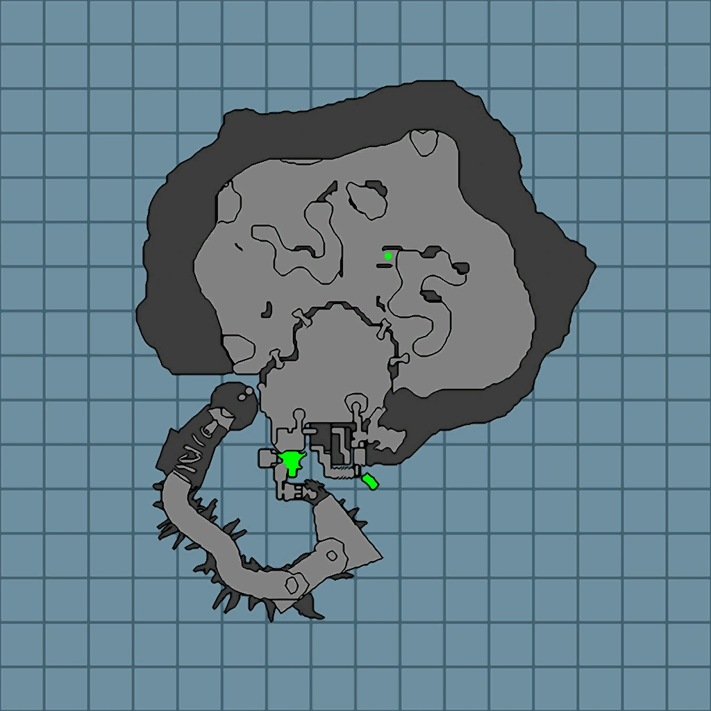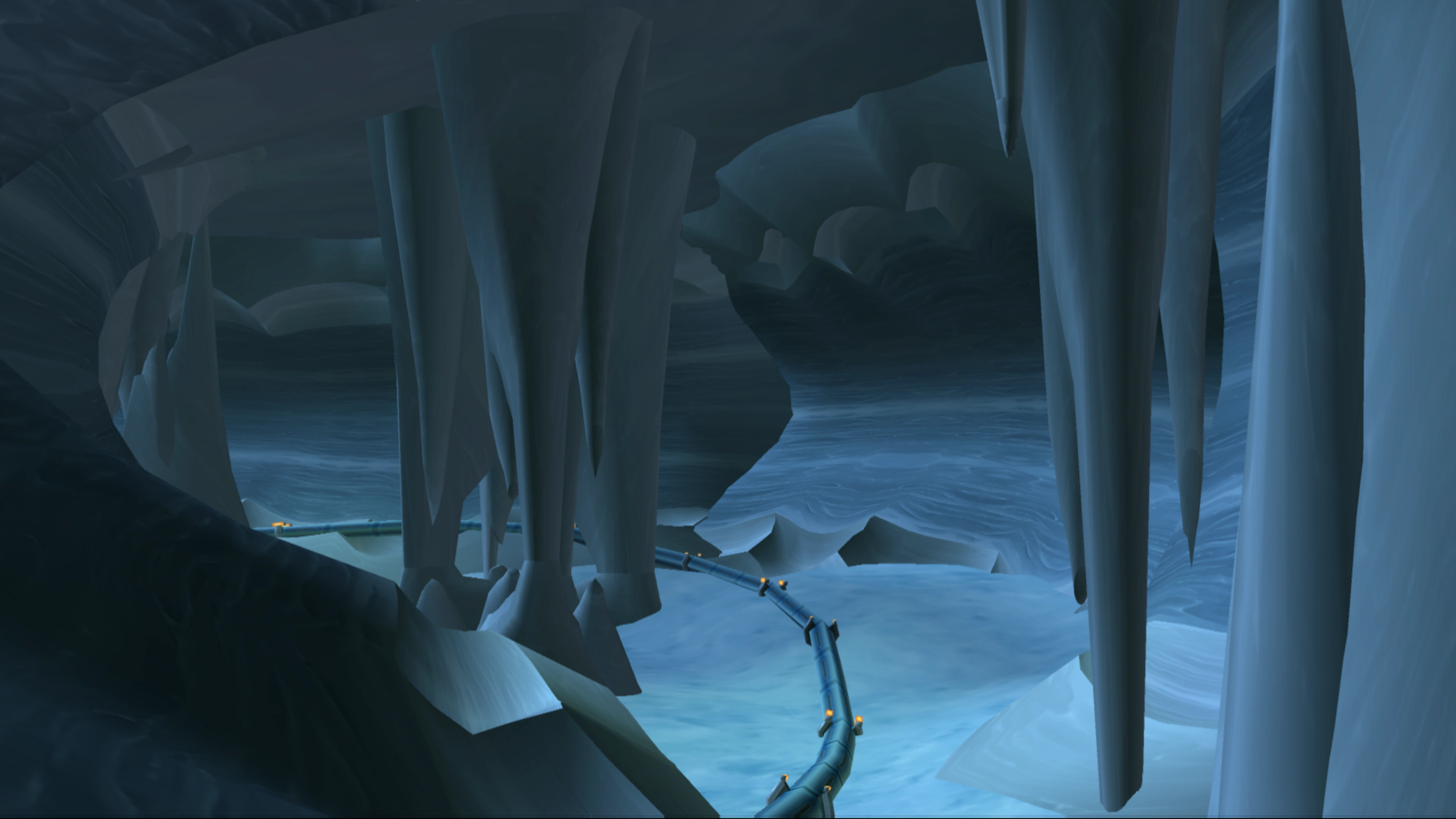 - ↑ Unlocking the door at the end of the mine shaft creates bridges up to the upper portion of the ice field.