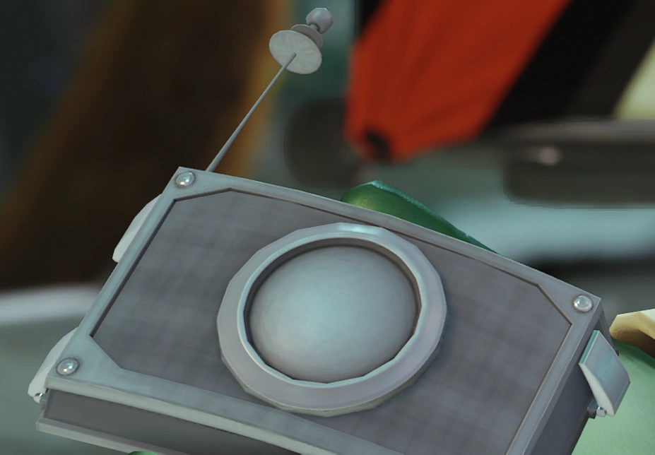 The Hologuise was originally planned to be a helmet, but was changed to a handheld gadget. The helmet design can be seen in the Insomniac Museum in Going Commando. Additionally, an unused handheld glove model for the Hologuise can be seen in early builds of the game.[3]