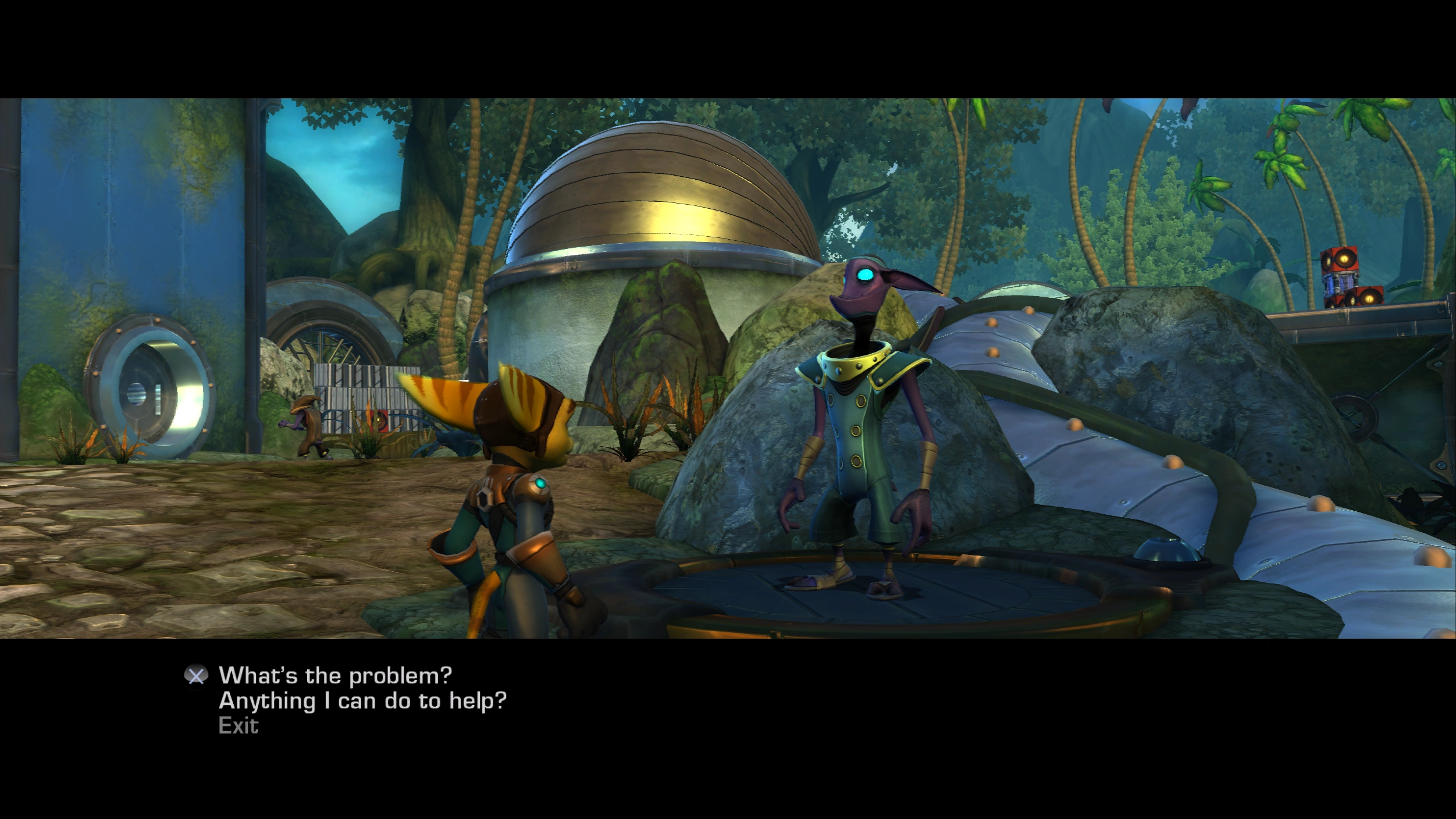 - ↑ A Crack in Time script § "Travel to Axiom City, Planet Terachnos (gameplay)"