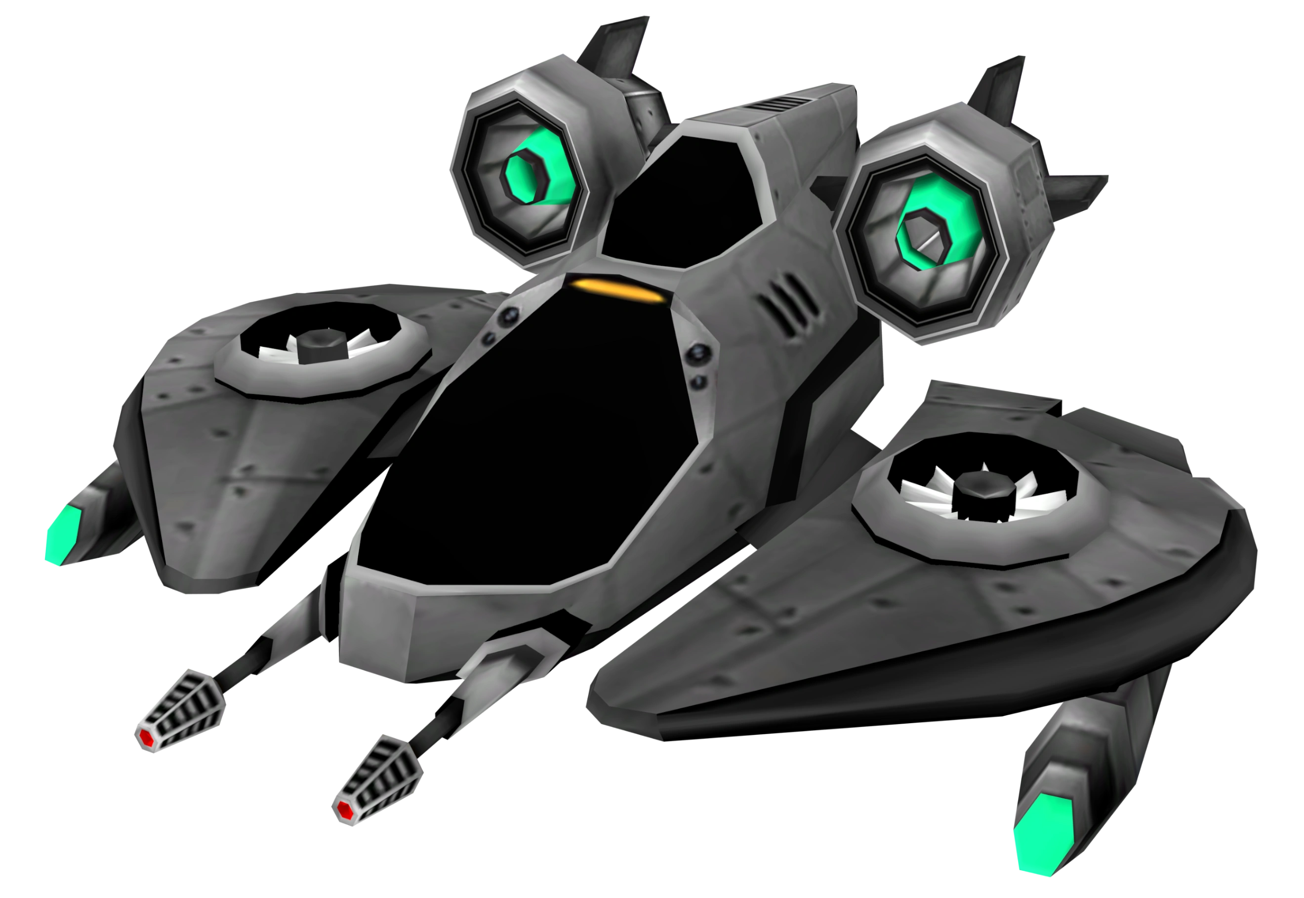 The hovership is a grey vessel with two engine flaps and two thrusters at the back behind the cockpit. It uses twin repeating rocket blasters as its main weaponry fired by the pilot, and bomb launchers that can be used by a second passenger.