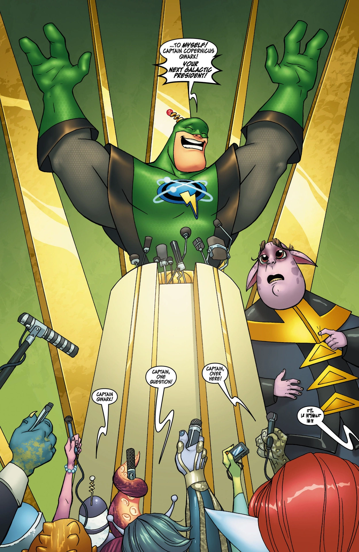 Captain Qwark announcing his own presidential campaign.