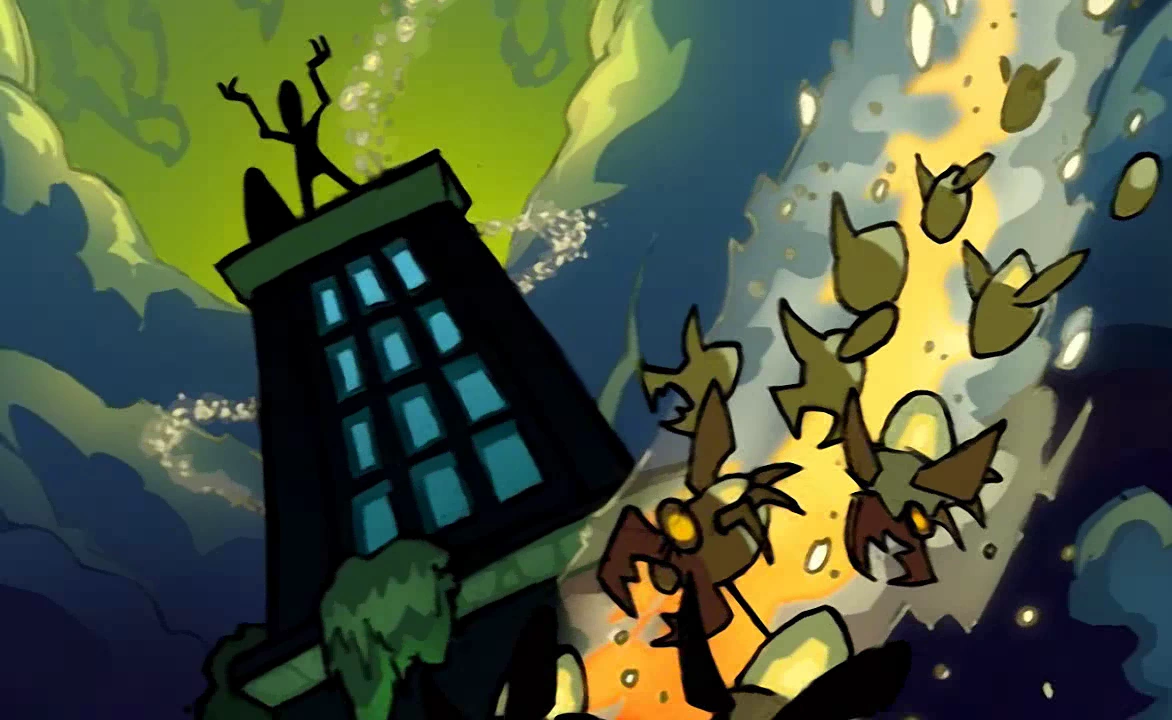 Nefarious releasing his insectoid swarm onto Metropolis.