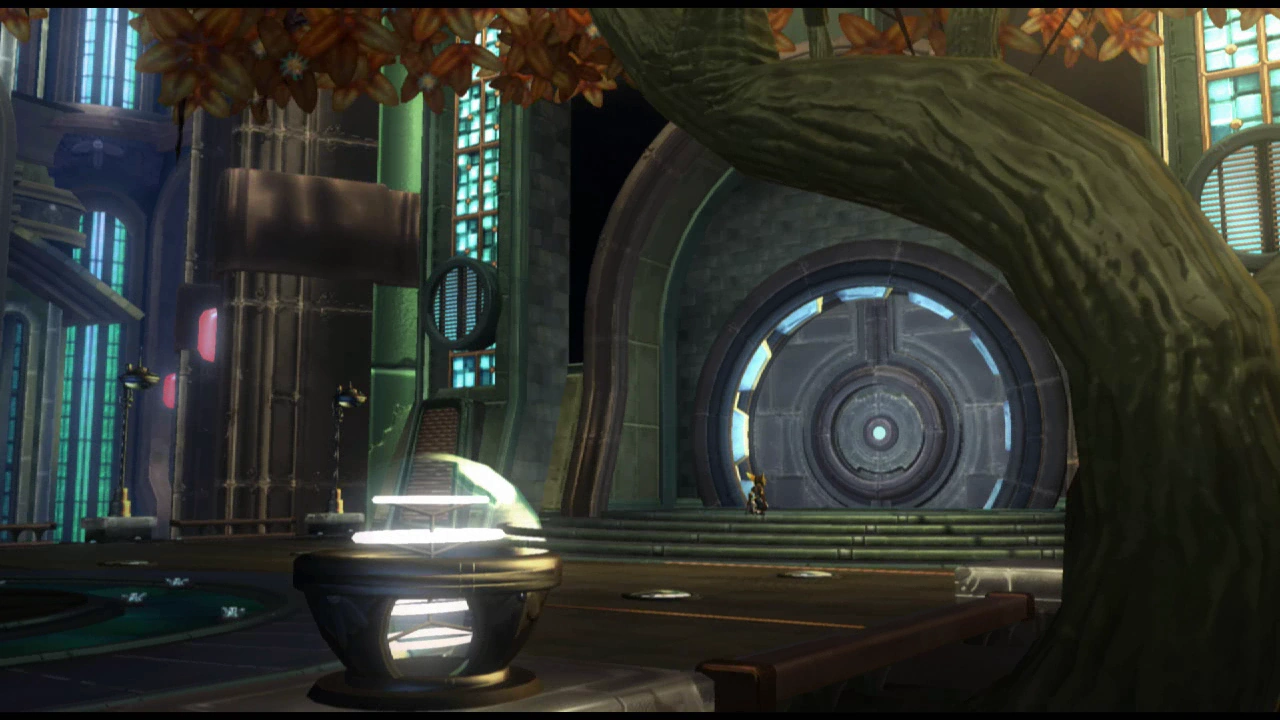 In Tools of Destruction, the path is a desperate flight through the city as it is being destroyed, utilizing meteor pads and mag-rails to traverse the collapsing infrastructure. The re-imagined Aleero City features a layout similar to the original, but with a more direct path to the Hall of Heroes via the grav-train.