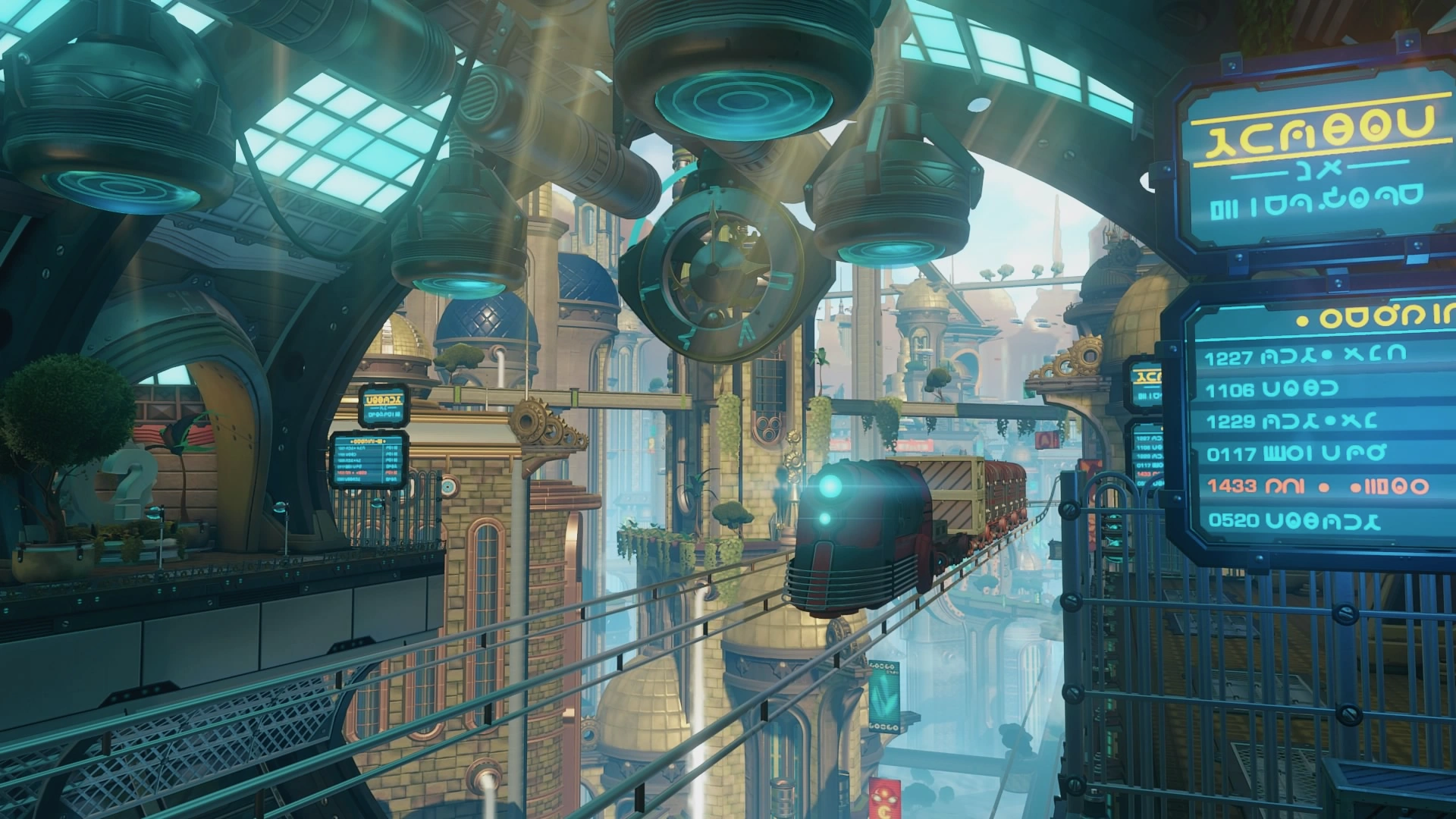 Ratchet and Clank were left stranded in the city after a blarg destroyed their ship, and had to find a route to the Hall of Heroes. This led to them fighting through blarg forces to reach Al's Roboshack, where Al upgraded Clank with a Heli-Pack for free as a gesture to the Rangers. Al then advised them that they could find a train to the Hall of Heroes, as a grav-train near his roboshack would take them straight back. They then used the Heli-Pack to travel to the grav-train station and rode a grav-train, transporting ships, statues, and dangerous animals and disconnect a bomb installed on it by the blarg. After disconnecting the bomb from the train, they then took the train to the Hall of Heroes.[13]