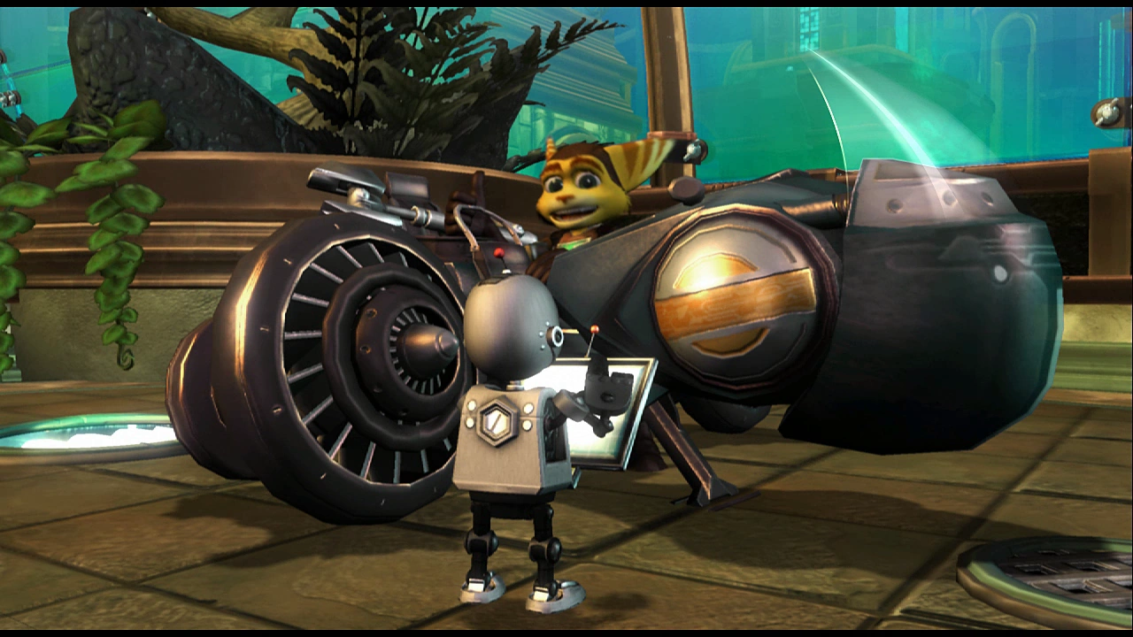 Ratchet and Clank resided on Metropolis, with Ratchet occupied by working on a rocket sled while disregarding Clank's warnings about the defective ion thrusters. While Ratchet was planning a trip, Captain Qwark called from the Planetary Defense Center, alerting them about an invasion by Emperor Tachyon's Imperial Army, prompting Ratchet to fly over. The ion thrusters failed, although the auxiliary thrusters allowed Ratchet to proceed far enough into the city, where Ratchet encountered the drophyd forces.[18]