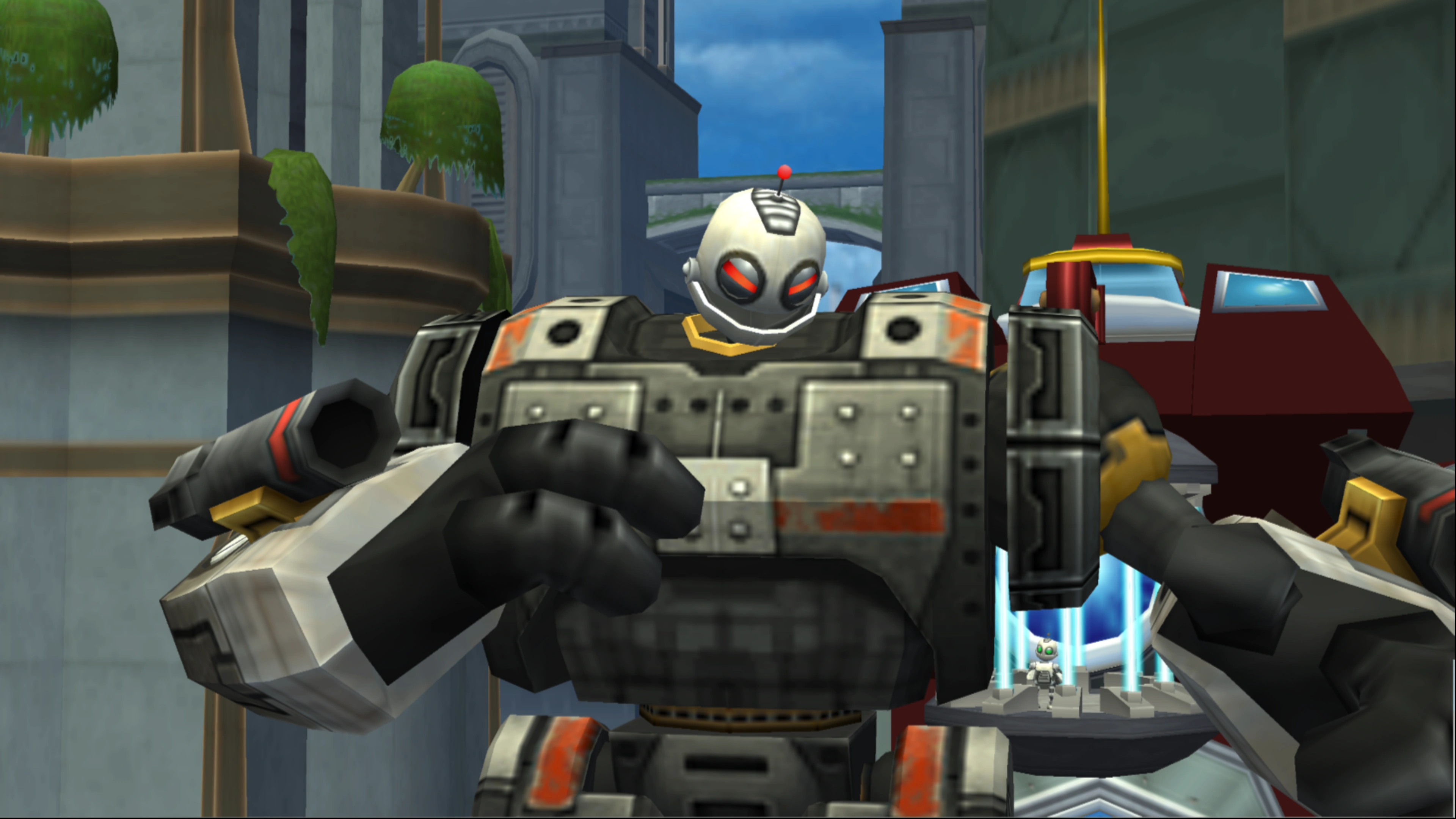 Metropolis was also the first level Insomniac prototyped and presented to Sony, before the game engine was ready. Early buildings were simple cutouts, and Ratchet carried a Pyrocitor and Suck Cannon. At Mark Cerny's suggestion, vegetation and flying cars were added to make the city feel alive. This early build was shown as the "Metropolis" diorama.[30][31] In the beta, Kerwan was named "Caldera," though "Metropolis" remained for the city.[32]