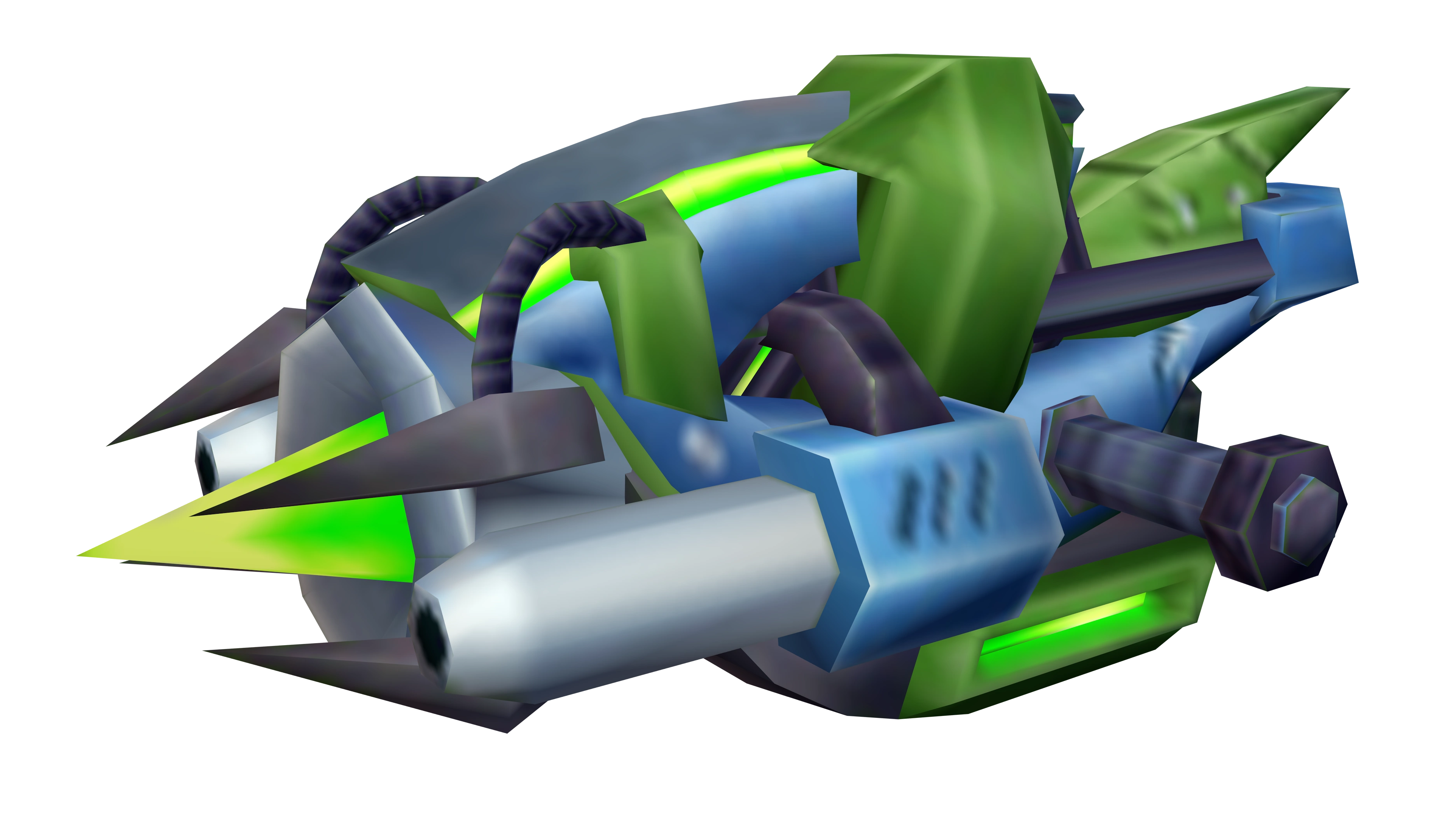 The Laser Tracer is a heavy, metallic green cannon with blue highlights. It fires a continuous red line when fired, and Ratchet stands still while firing it. The Optical Maser Array instead fires a purple-blue beam and darkens its surroundings. The Optical Maser Array uses stimulated emission to highly excite captured hydrogen compounds, forcing the resultant amplifying medium into a resonant cavity, capturing the feedback that is created and producing a coherent radiation beam of immense power.[2]