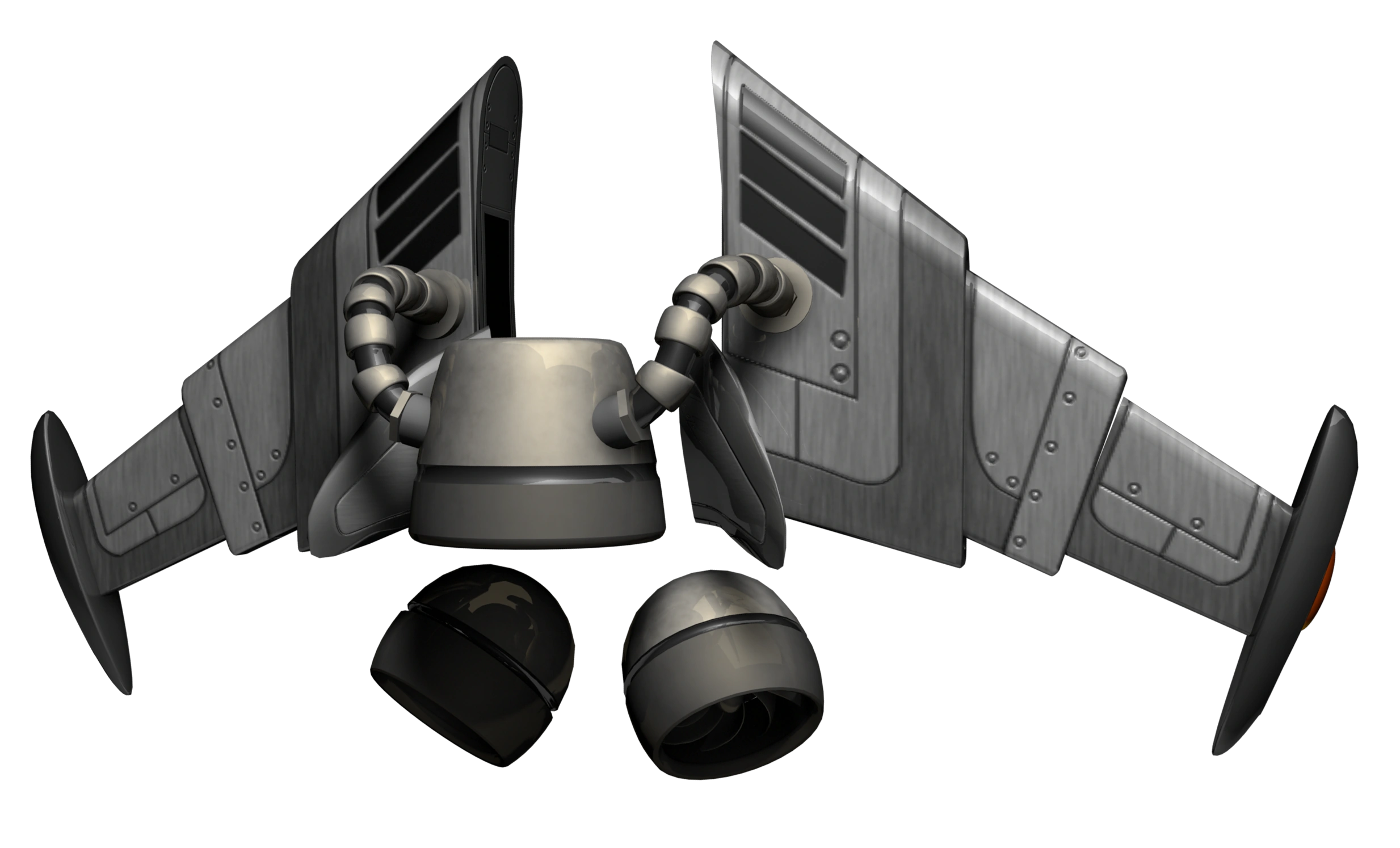 in midair allows Ratchet to glide and slowly descend. The Levitator replaces Clank's arms with wings, similar to those of the Thruster-Pack, but longer and retractable, while the feet are the same small thrusters on both. The wings are each connected by a tube to a large single thruster on the back of Clank.
