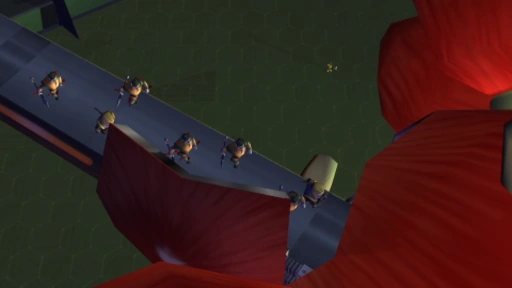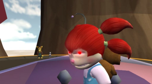 In "Catch Luna", Luna tried to stop them by setting loose were-sheep to attack Ratchet and Clank, as well as activating dangerous machinery inside of a barn. They continued to pursue her, until she made use of a vehicle which doubled as both a plane and a combine harvester. In ""Disable" Luna", Ratchet and Clank ran through fields of wheat to avoid her, before she confronted them. There, she explained that the technomites were tired of being taken advantage of by the galaxy, and told them that they would be unable to stop Otto Destruct's clone factory.
