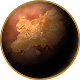 Marcadia has a dark orange atmosphere and surface water. When viewed from space, it has one large orange continent with a few southern islands.