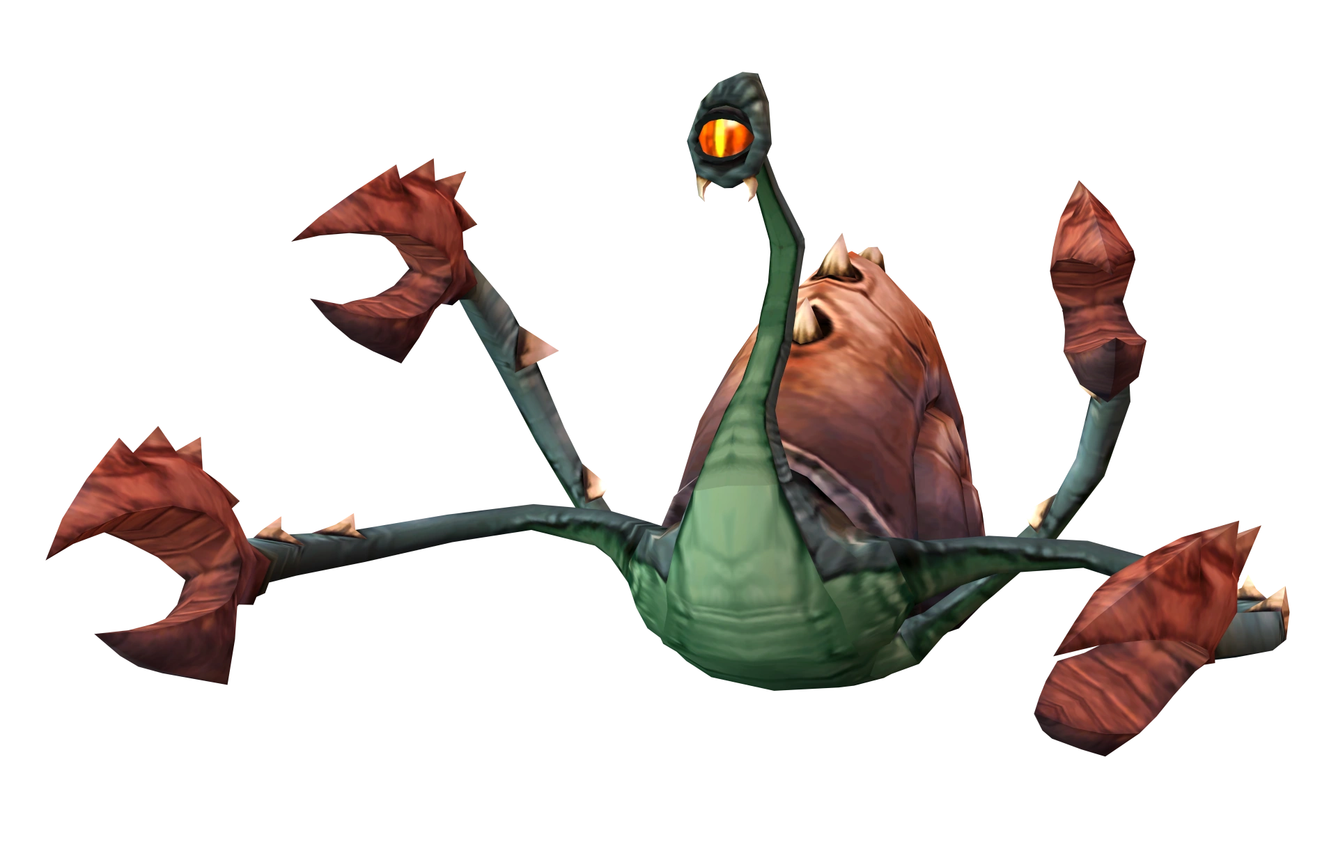 Mutant swamp beasts[1] are enemies in Going Commando encountered in the Megacorp Outlet area on planet Oozla. They are medium sized beasts that have the body of a large snail, a single eye stalk, and four tentacles with crab-like claws that swipe at enemies by plunging to attack them. It was theorized that they were hatched by a larger 'Mother Beast', which was later discovered to be the swamp monster II, an immense version of the swamp beast.[1] Ratchet encountered them during "Find the store entrance" (in which they killed many lone Megacorp employees), "Investigate the Megacorp store" (in which they had infested the outlet itself), and "Explore the swamp ruins". They were often fought alongside the mutant muckdweller and mutant fireflies.