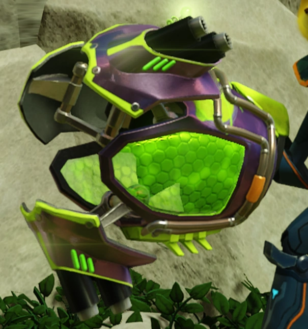 The Proton Drum is a capsule filled with a strange green liquid with three metallic "claws" attached to it. The claws pulsate at a steady pace. The top features a large antenna similar to the Hoverbomb Gun.