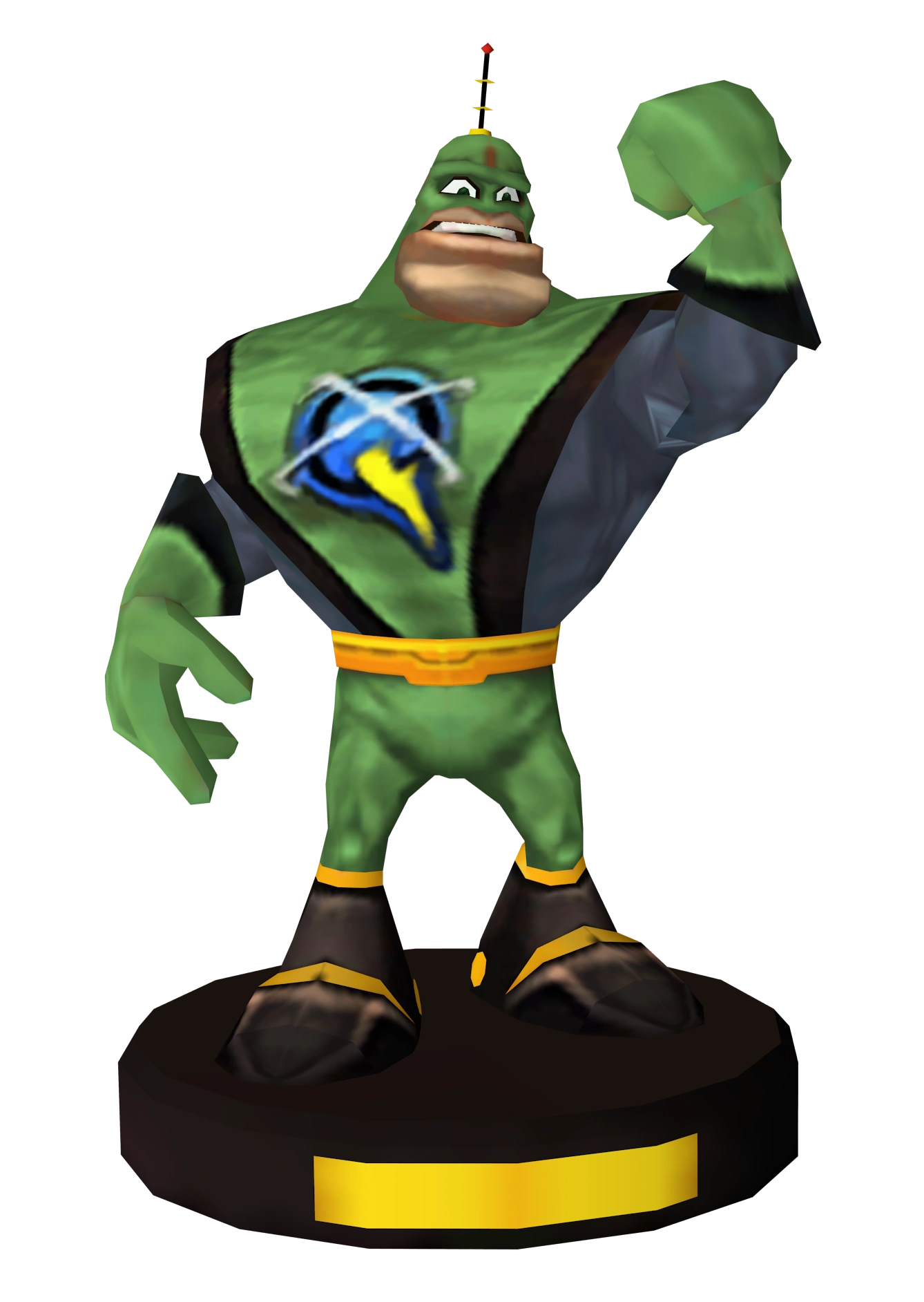 A Qwark statuette is an optional item collectible, depicting Captain Qwark, in Going Commando. The Plumber was called to repair a clogged pipeline, and had to remove a Qwark action figure flushed down a toilet aboard the flying lab at Aranos. He sold it to Ratchet and Clank for 20,000 bolts after they encountered him in "Explore the rest of the flying base". It initially appeared useless, but was then be traded to rabid Qwark fanboy, Stuart Zurgo, for the Armor Magnetizer in "Bring Qwark Collectible to Armory Employee". The action figure and Zurgo later appeared in an episode in Behind the Hero.