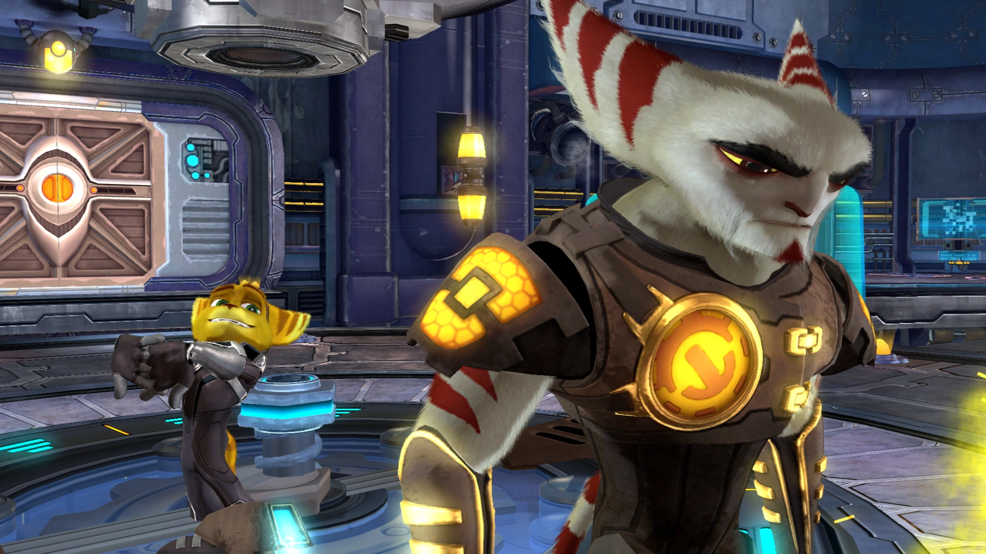 Son of Kaden, Ratchet was born on Fastoon in the Polaris Galaxy but came to grow up as an orphaned mechanic on Veldin in the Solana Galaxy. His life was changed once he met Clank, a small robot who crash-landed on Veldin and became his lifelong companion and best friend. The two have since shared many adventures, often working alongside Captain Qwark, as they have saved galaxies from many galactic criminals and other supervillains, the most notable of which being Dr. Nefarious. During his time, Ratchet has worked for Megacorp as a trained commando, the Galactic Rangers as a sergeant, the Q-Force as a leading member, and the Polaris Defense Force.