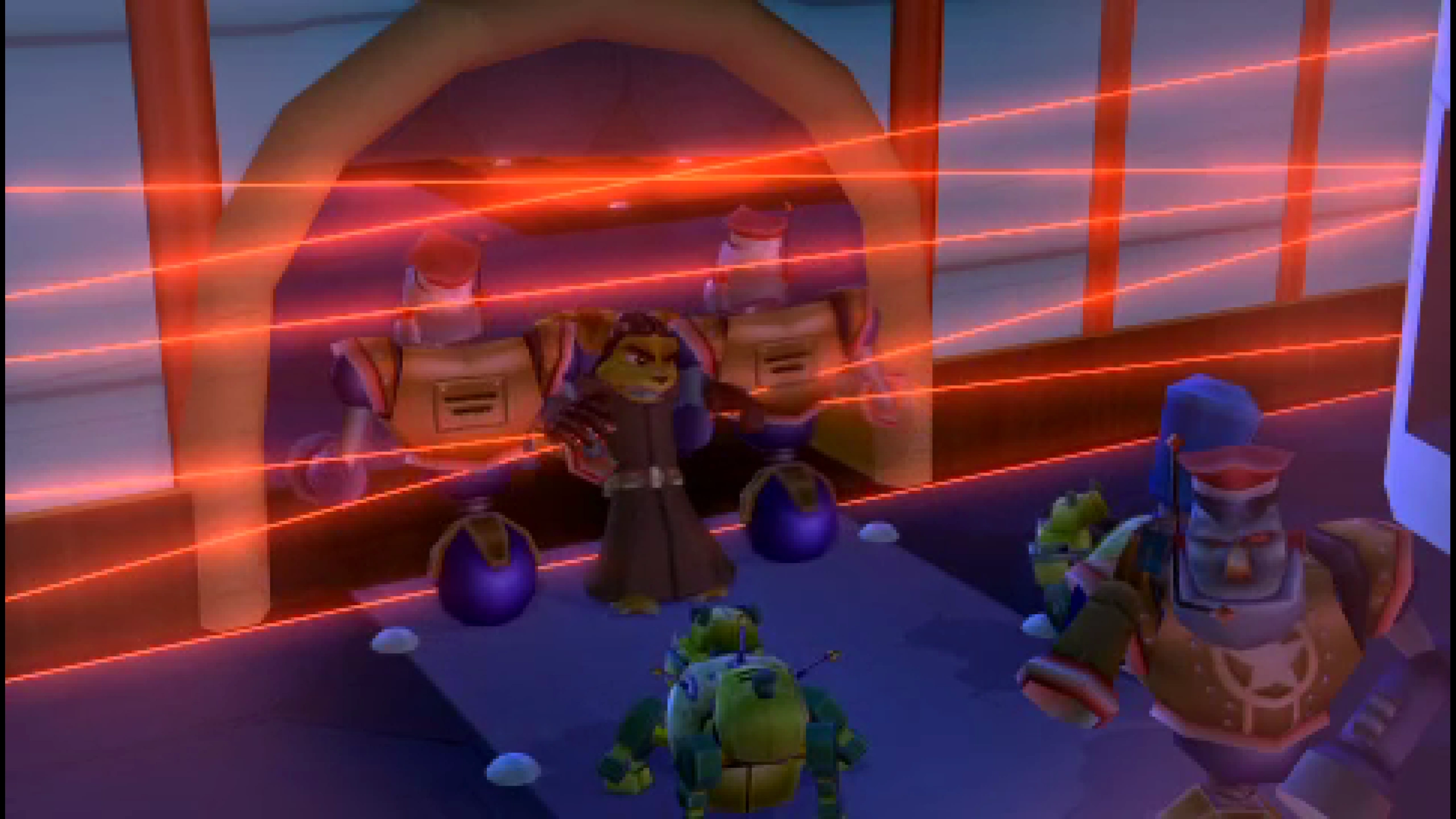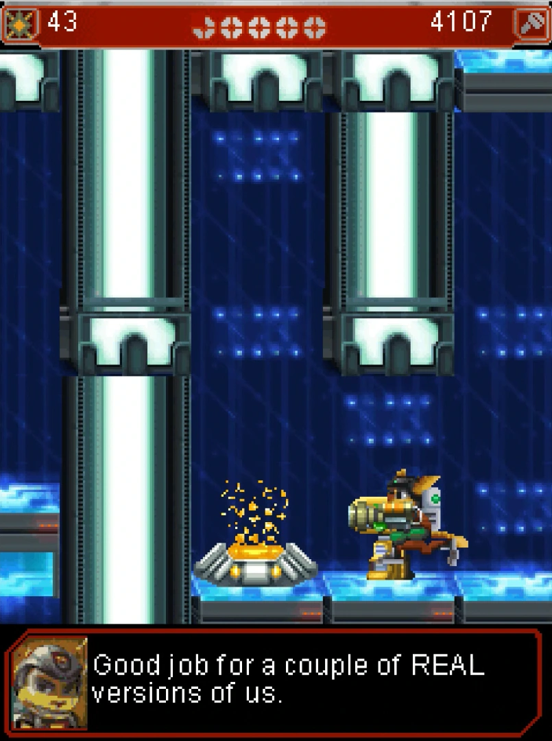 Ratchet as he encounters Clank's security backup while inside Clank.