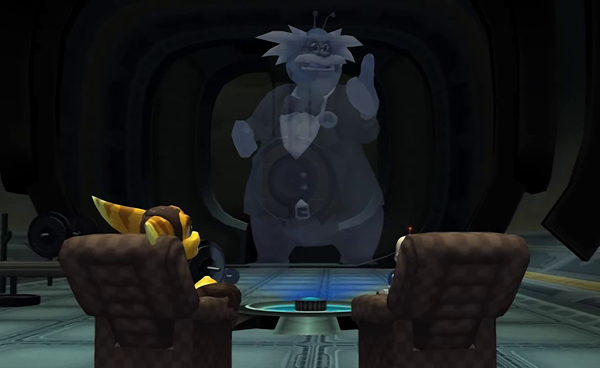 Following Nefarious' defeat, Ratchet, alongside many friends of his he had encountered in his adventures, went to see the premiere of a new Secret Agent Clank film.
