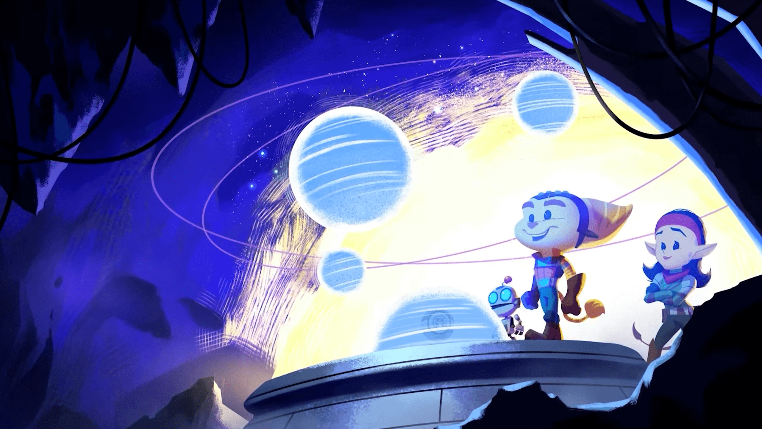 Rift Apart features both entirely new planets, as well as alternate dimensions of planets from previous games.[4] Between planets there are seamless transitions, with no load screens.[6]