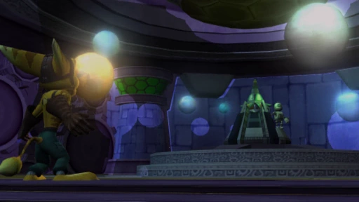 At the medical space station, while Ratchet remained unconscious, he had a strange dream, in which he encountered odd hallucinations of characters and enemies he had encountered in the past. Once Clank found Ratchet, he was able to awake him from this dream. The duo then went on to destroy the space station, and soon found out that Luna was in league with the technomites and their leader, serving to lure Ratchet into a trap. Using found coordinates they traveled to Challax, where they discovered a Technomite City, and that Luna was actually a robot